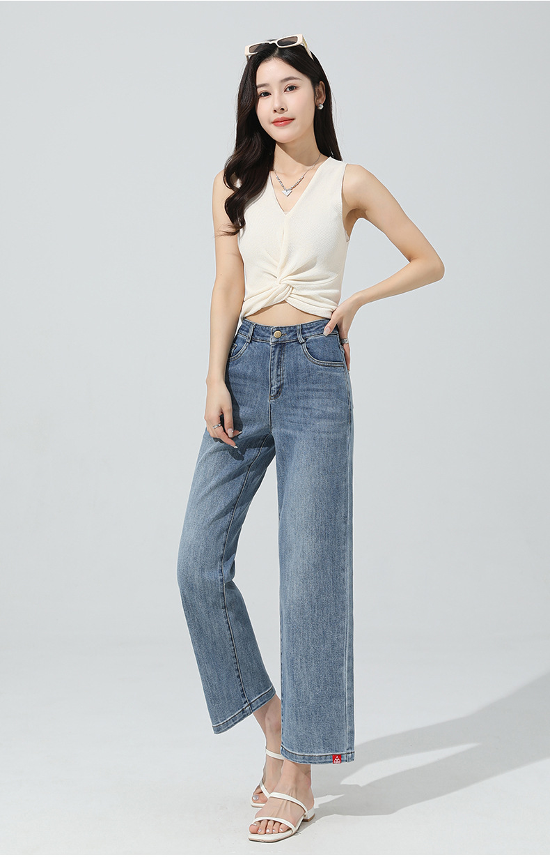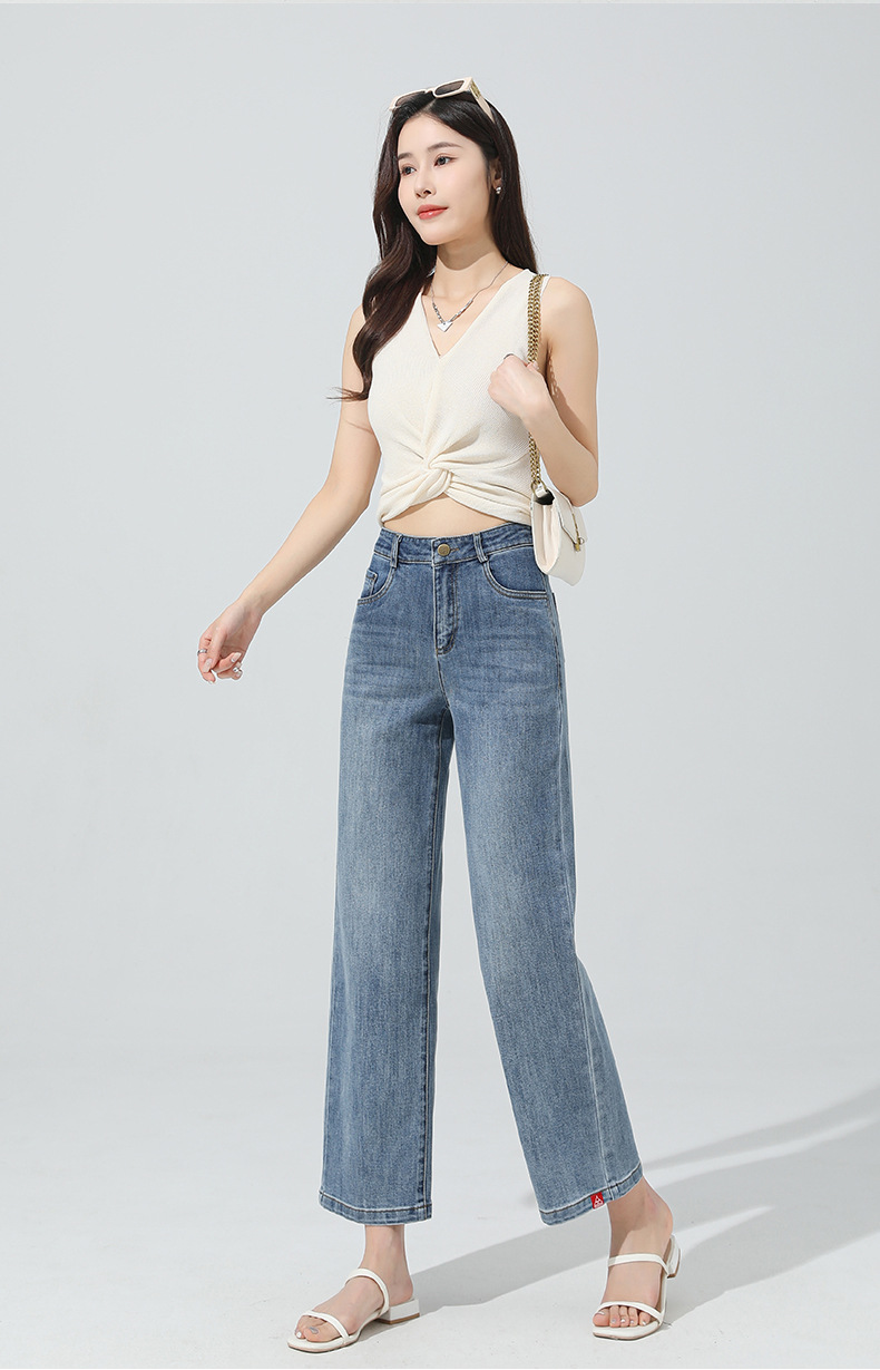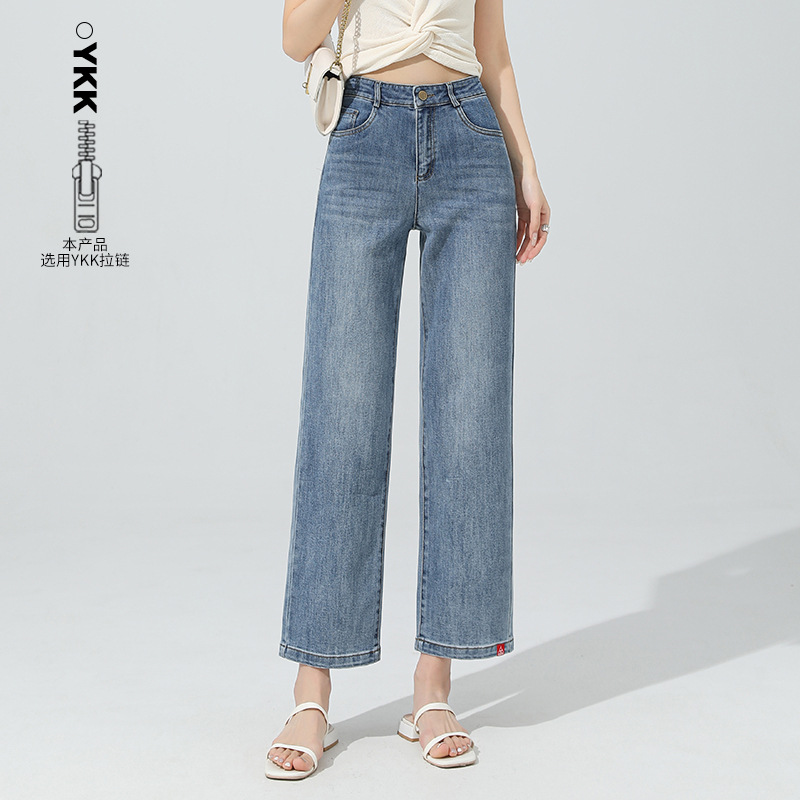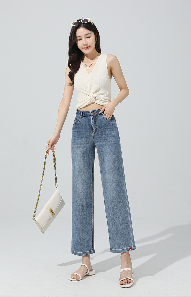 2026년 봄 다용도 데님 9부 스트레이트 팬츠 한국 스타일 하이웨이스트 슬림핏 와이드 팬츠 여성용 20105