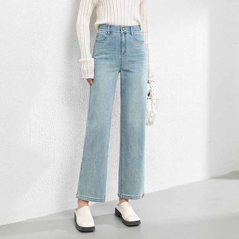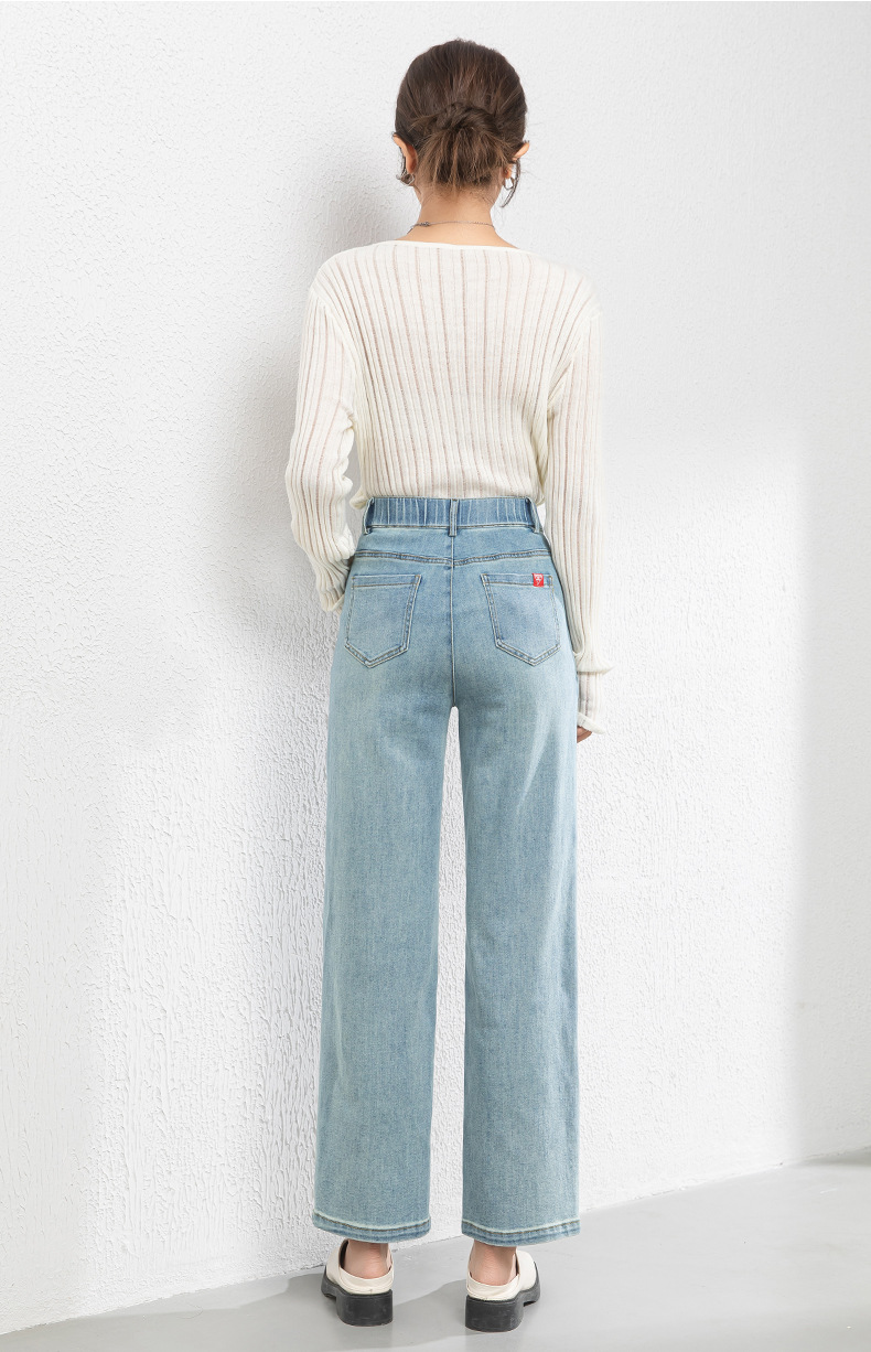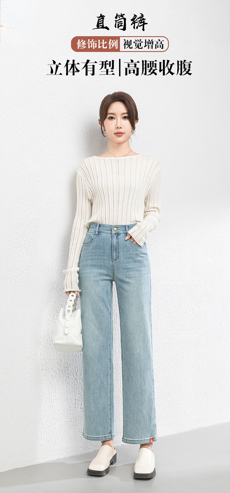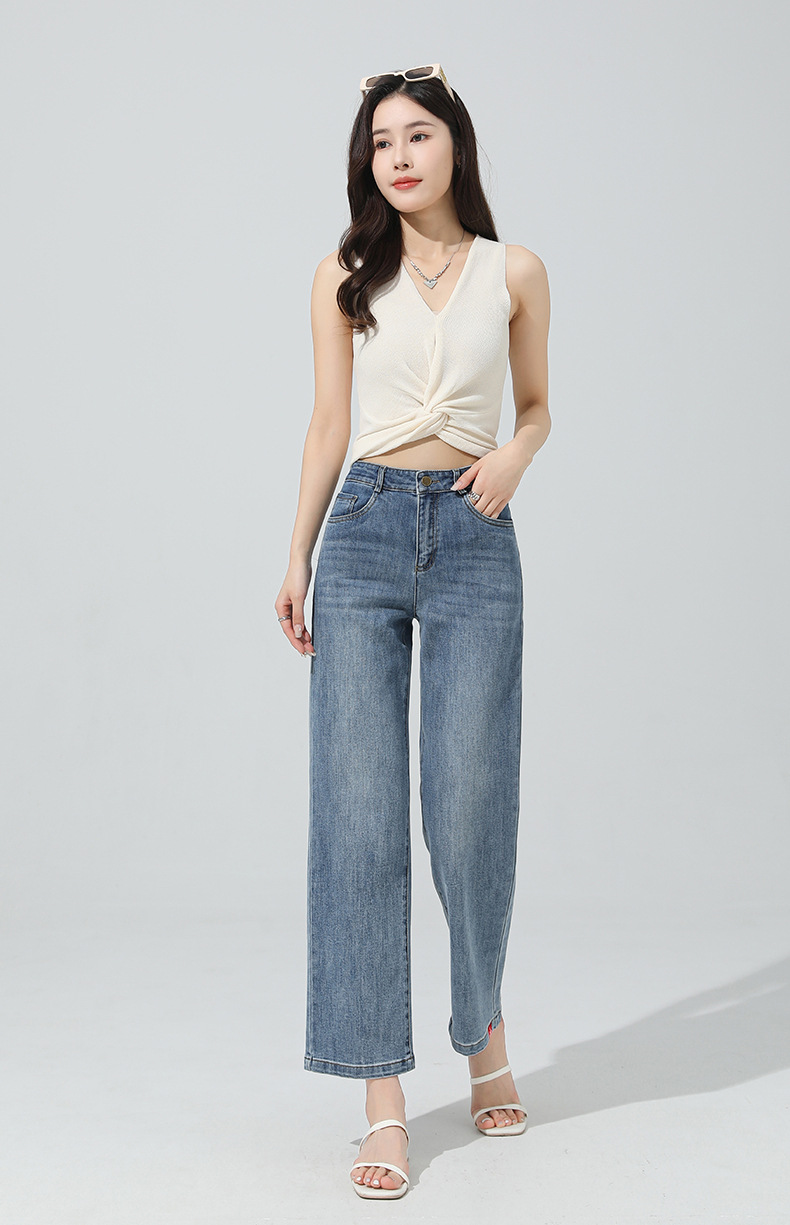 2026년 봄 다용도 데님 9부 스트레이트 팬츠 한국 스타일 하이웨이스트 슬림핏 와이드 팬츠 여성용 20105