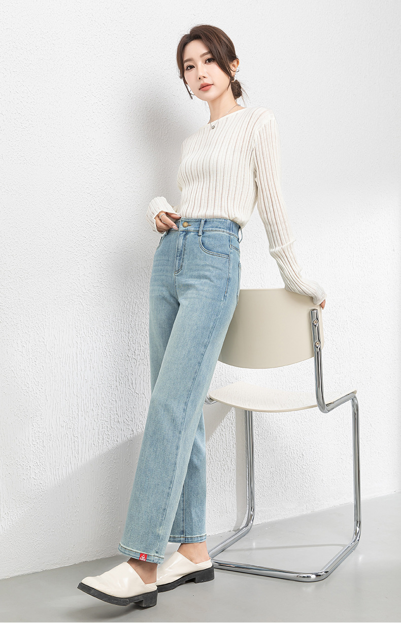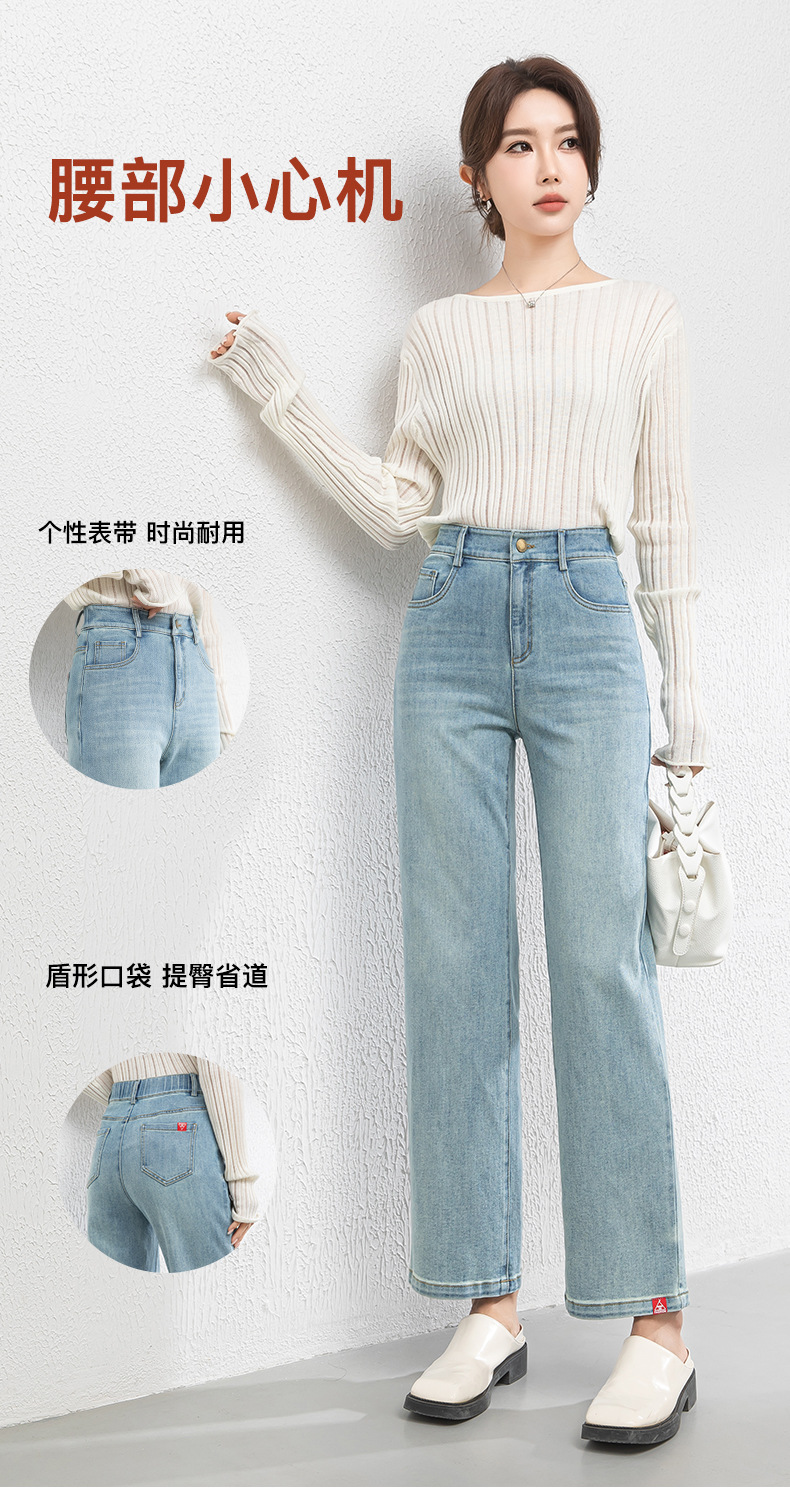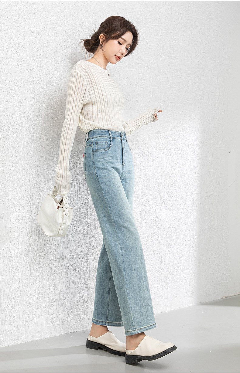 2026년 봄 다용도 데님 9부 스트레이트 팬츠 한국 스타일 하이웨이스트 슬림핏 와이드 팬츠 여성용 20105스토어 가기
