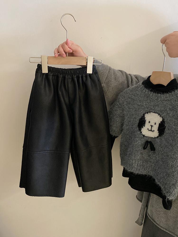 [중간 허리 디자인] 한국 여자 가죽 바지 2024 기모 새 가을/겨울 바지 아기 느슨한 서양식 기모