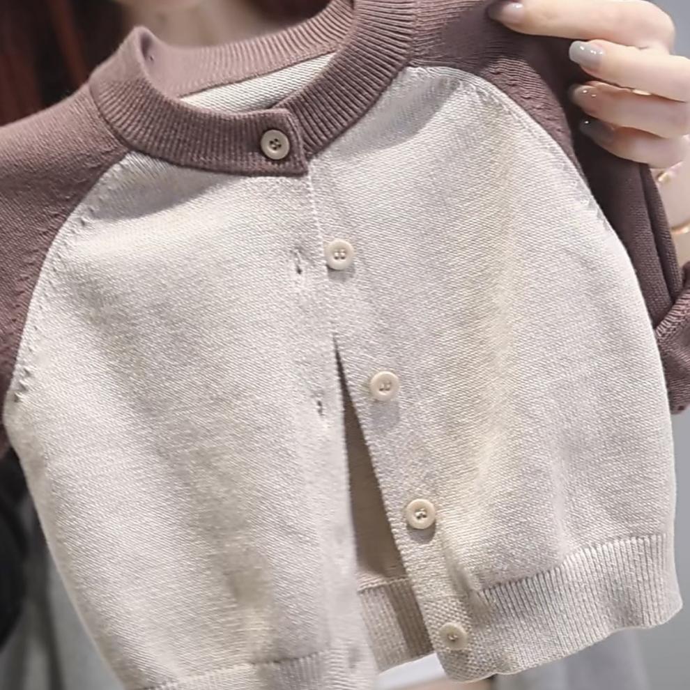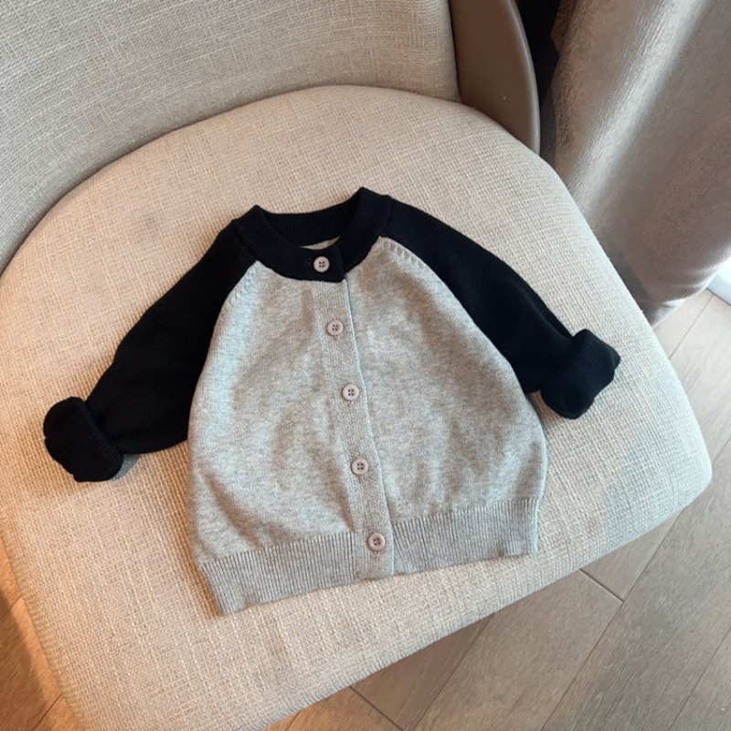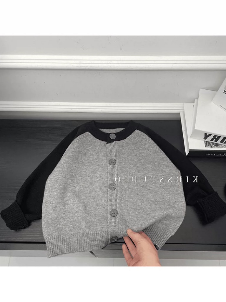 신간 어린이 니트 스웨터 카디건 소년 · 소녀 신작 한국식 코트 콘트라스트 패션 올매치