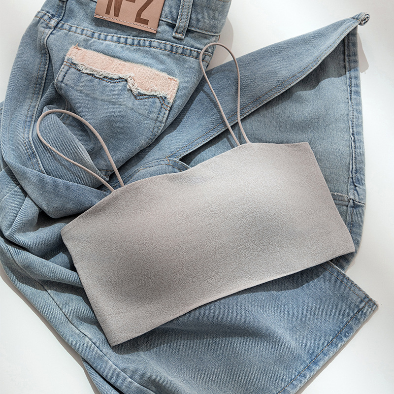 끈이없는 얇은 어깨 끈 섹시한 작은 슬링 여성용 원피스 가슴 패드 여성을위한 간단한 유행 고급 올 매치 노마크 속옷
