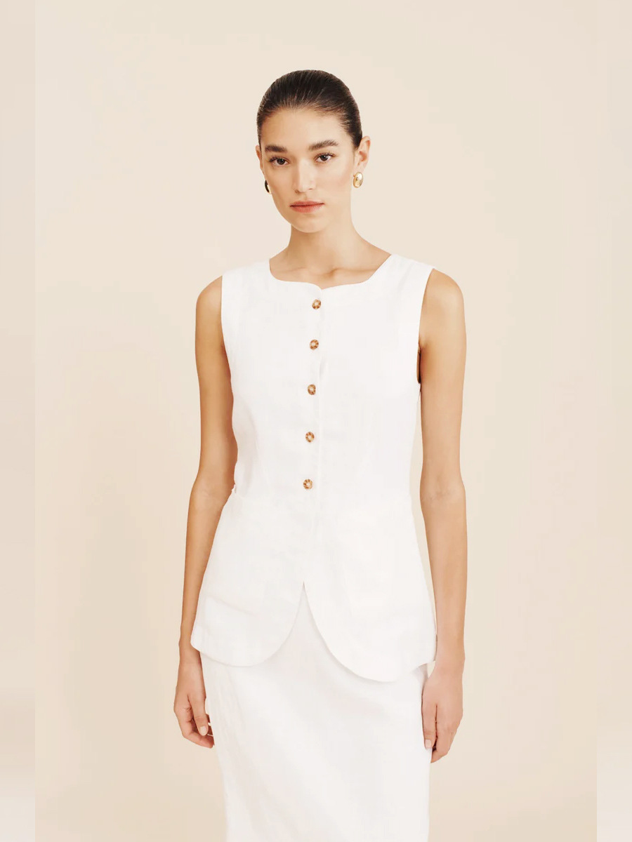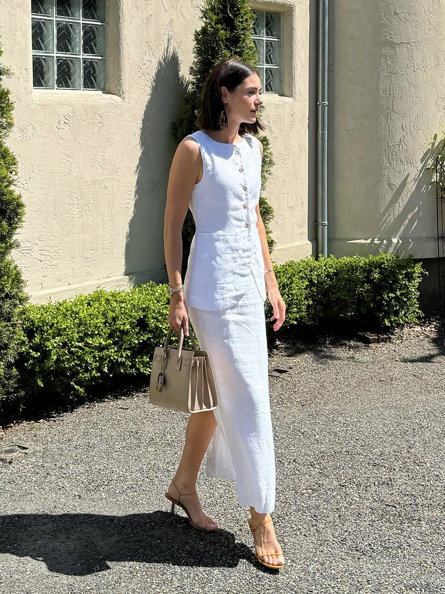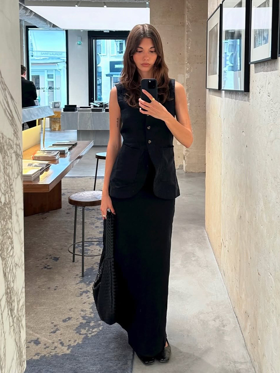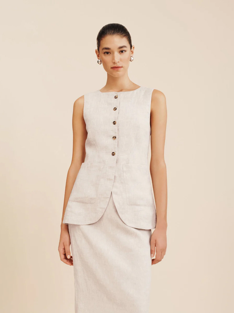 유럽과 미국 세트 국경 간 간단한 민소매 조끼 높은 허리 치마 2025 봄과 여름 새로운 린넨 캐주얼 세트 여성스토어 가기