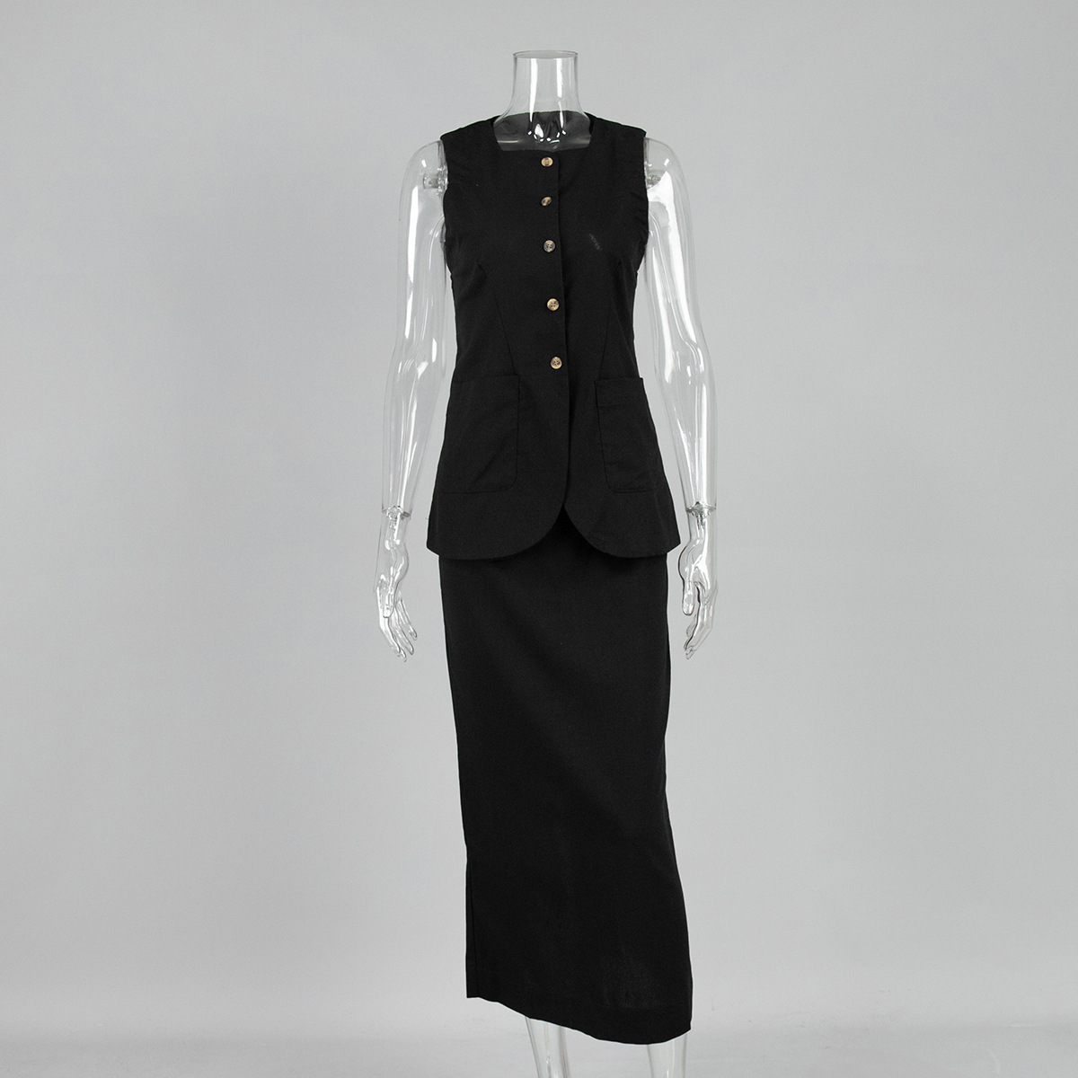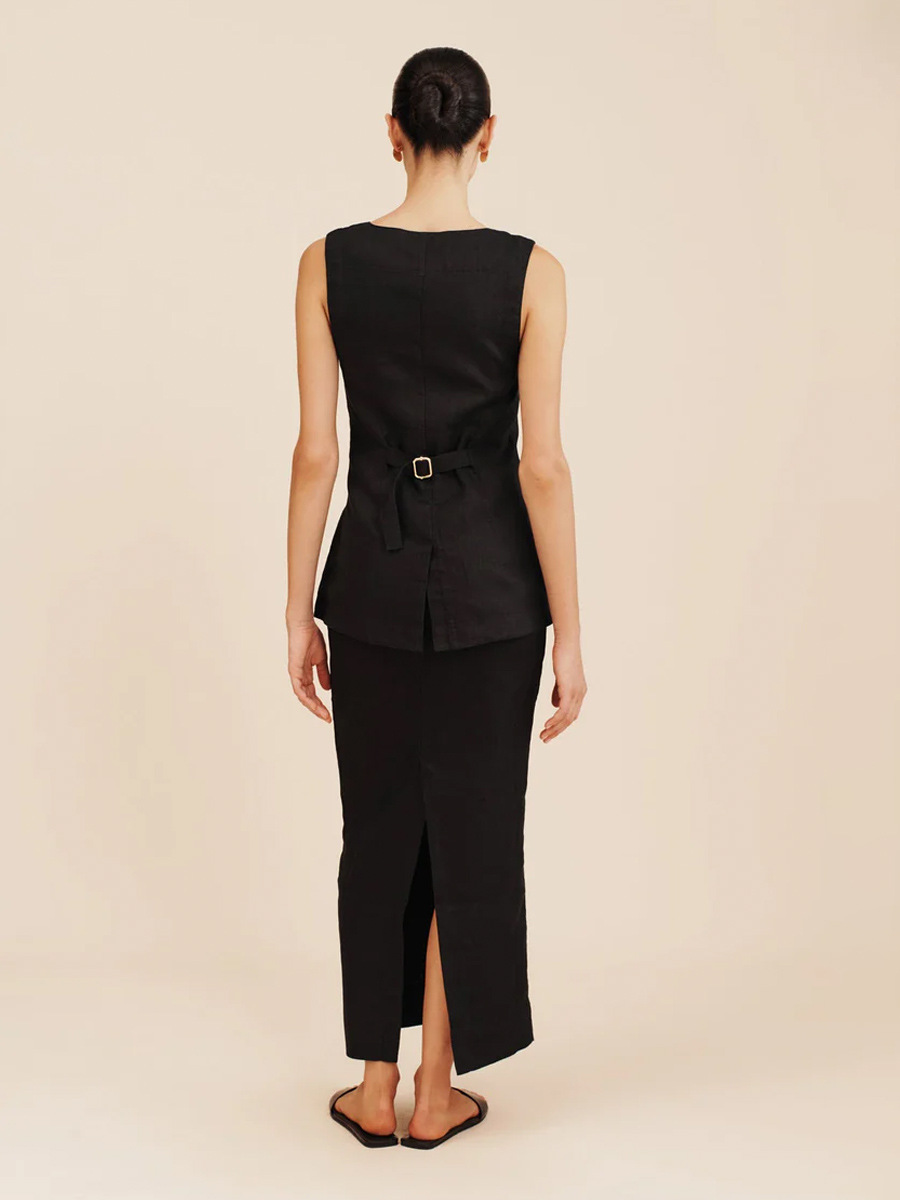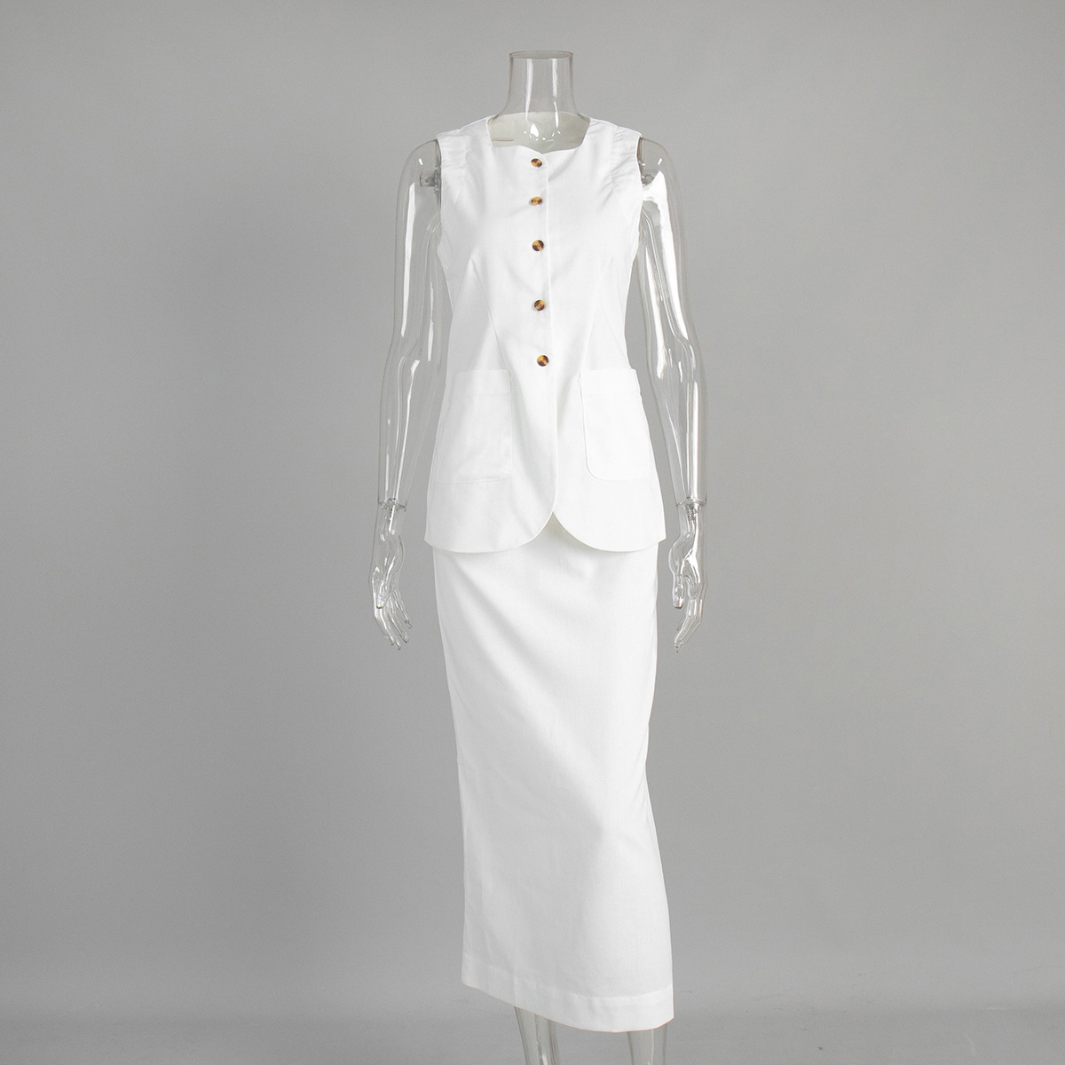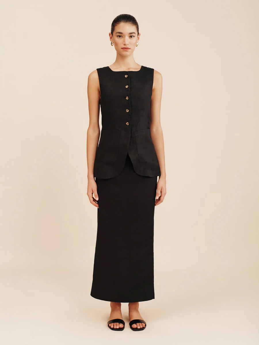유럽과 미국 세트 국경 간 간단한 민소매 조끼 높은 허리 치마 2025 봄과 여름 새로운 린넨 캐주얼 세트 여성