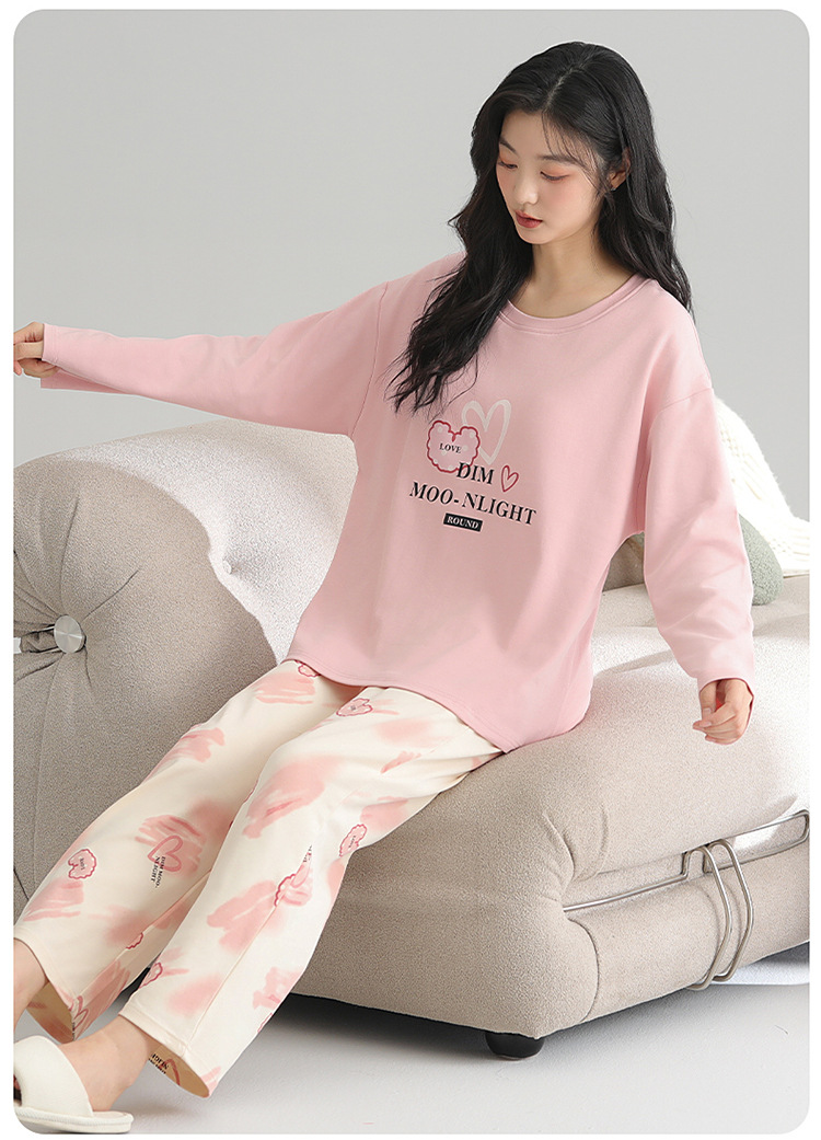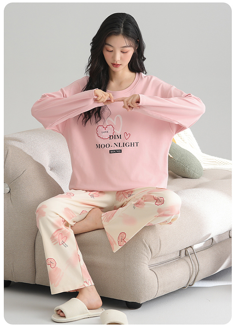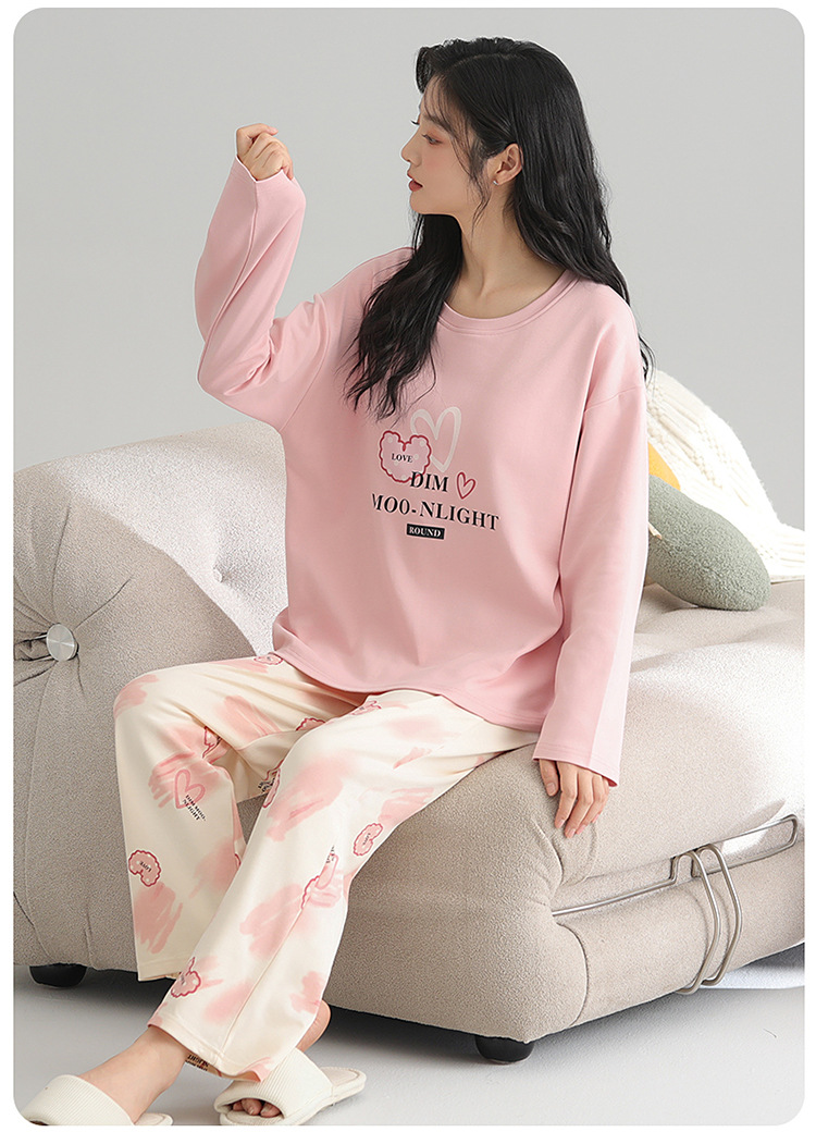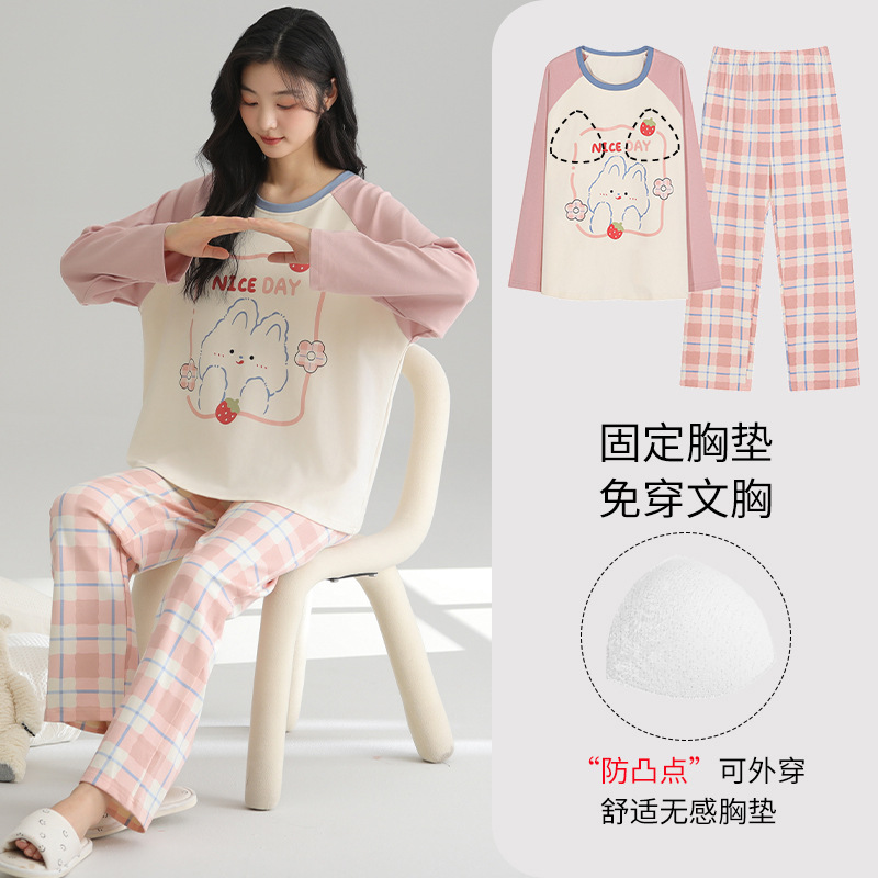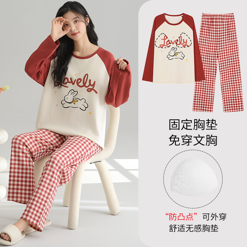 2025 새로운 잠옷 여성의 봄과 가을 긴 소매 바지 세트 겨울 1 대 1 홈 옷을 입고 가슴 패드 외부와 면화