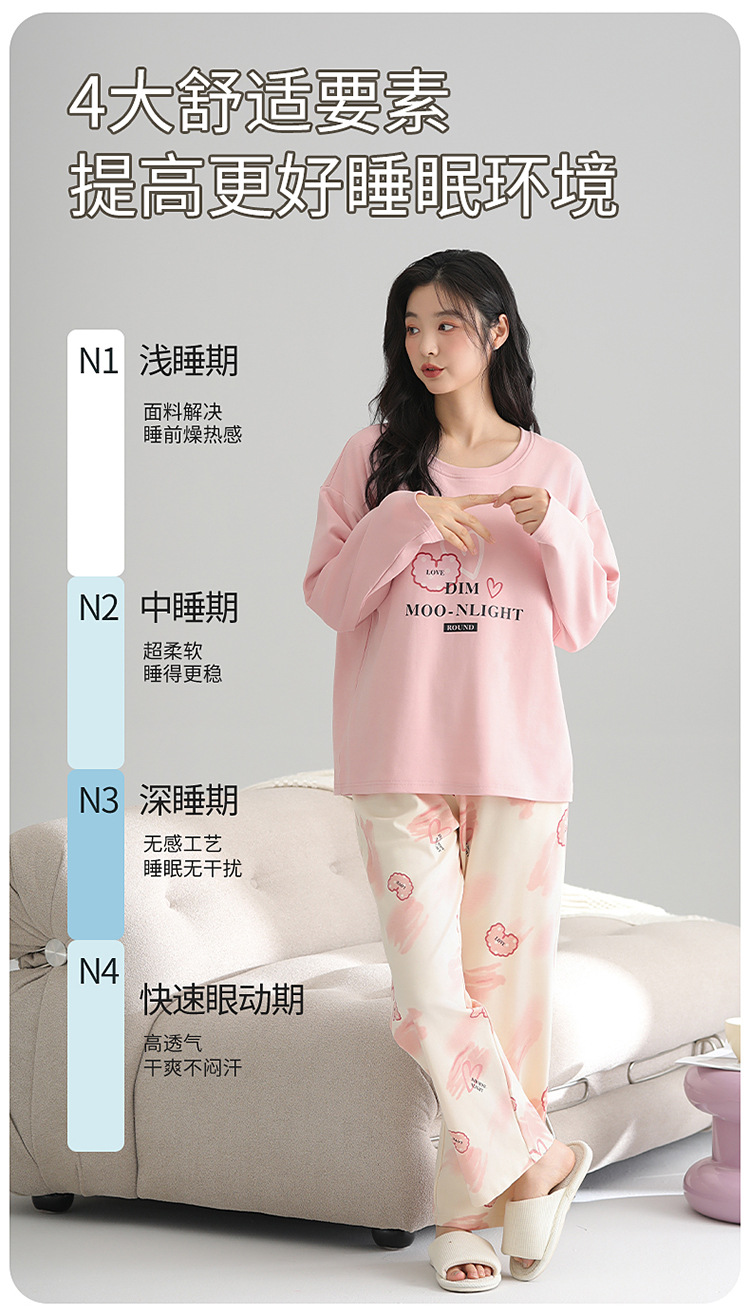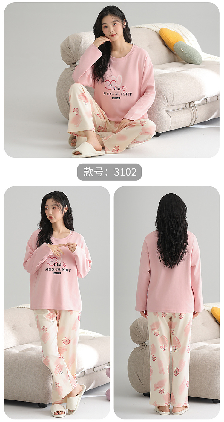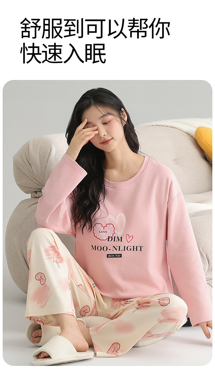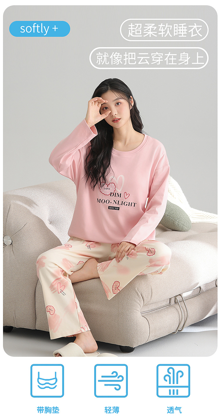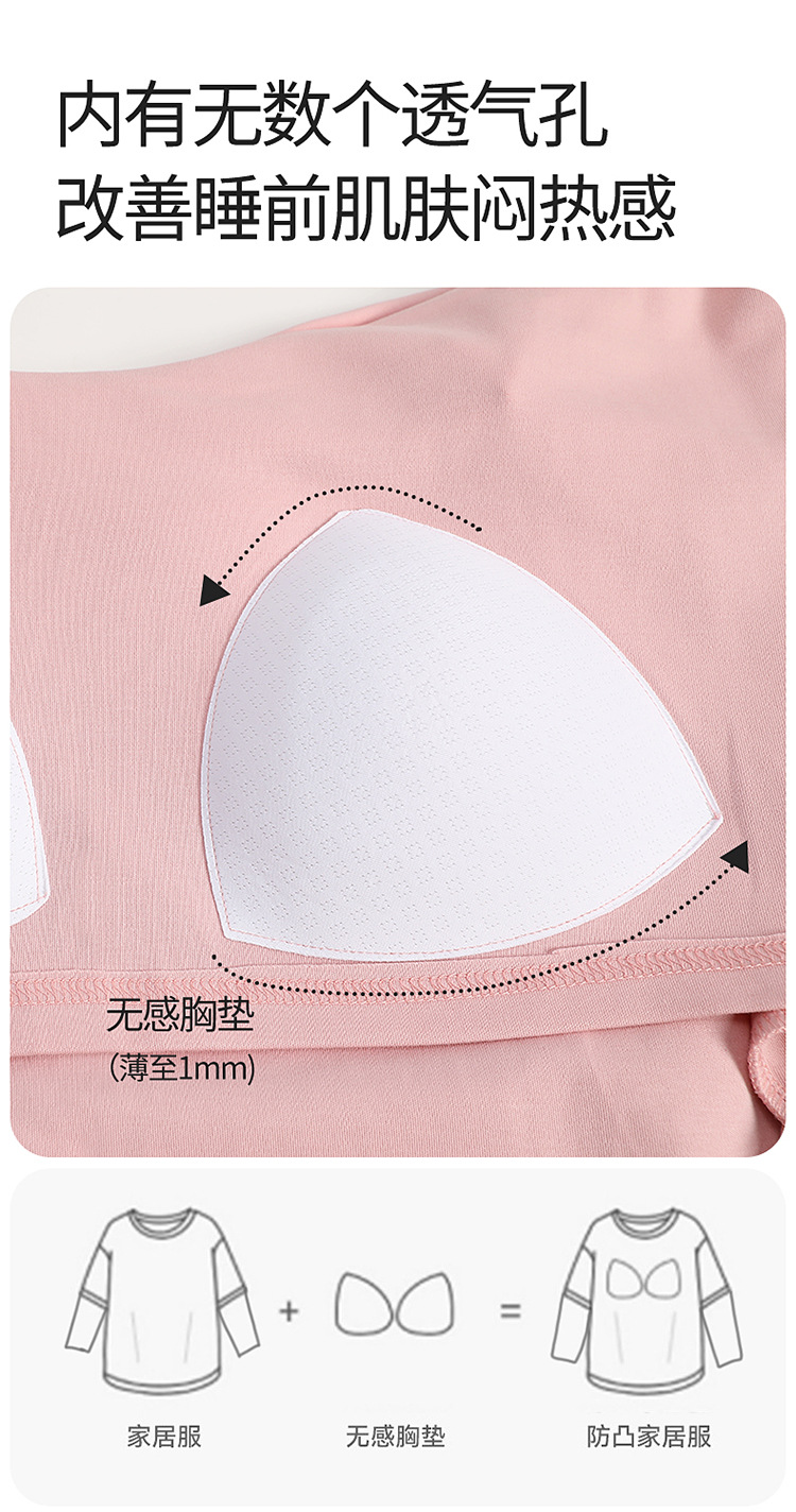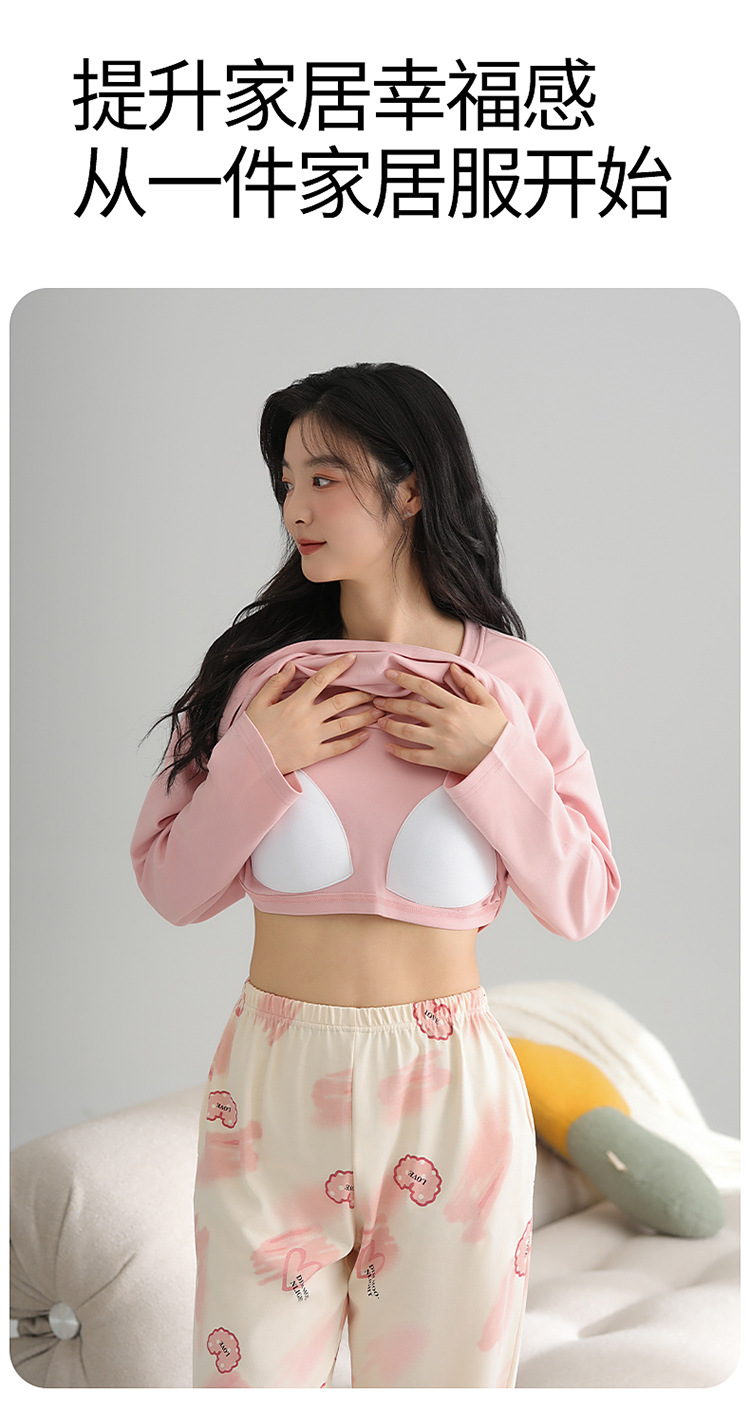 2025 새로운 잠옷 여성의 봄과 가을 긴 소매 바지 세트 겨울 1 대 1 홈 옷을 입고 가슴 패드 외부와 면화스토어 가기