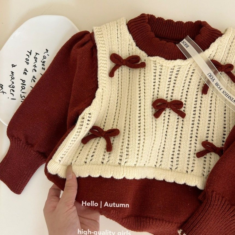 소녀 스웨터 2024 년 가을과 겨울 니트 새 터틀넥 활 니트 스웨터 베이비 스타일 탑 어린이