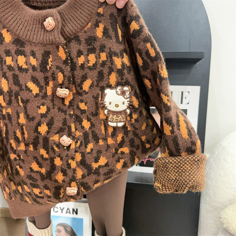 2024 가을과 겨울 스웨터 코트 한국 어린이 소년 소녀 아기 표범 kt 고양이 자수 스웨터 카디건 탑