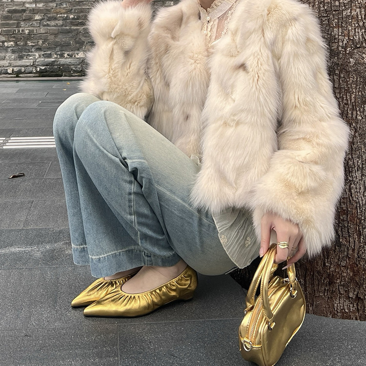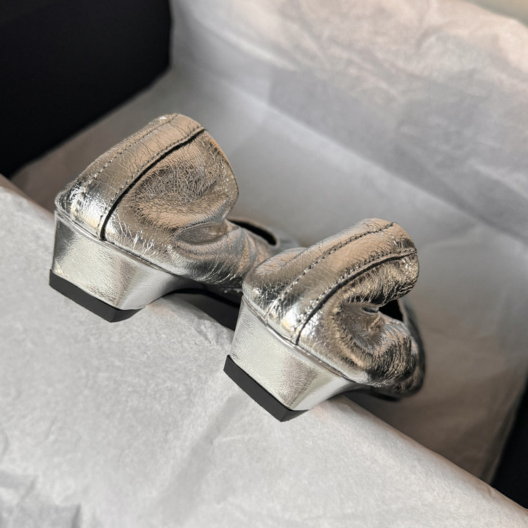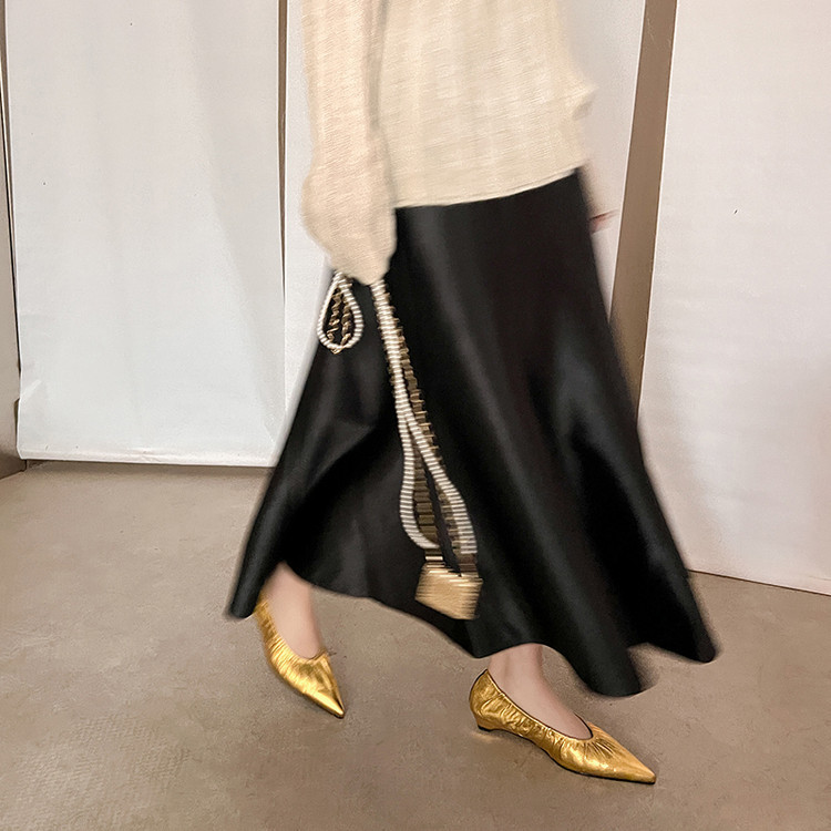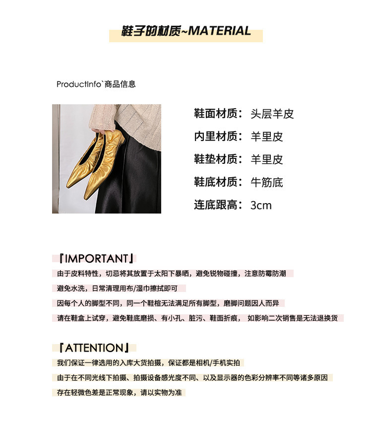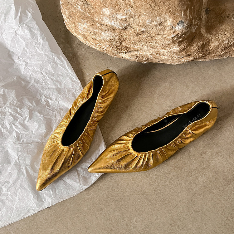 한국식 양가죽 스몰 골드 신발 뾰족한 발가락 로우 탑 싱글 레이어 신발 이른 봄 새 도착 풀 가죽 주름 로우 힐 실버 여성 싱글 레이어 신발스토어 가기