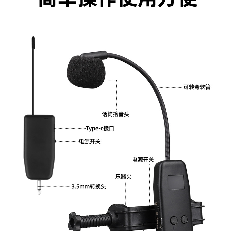 무선 마이크 픽업 첼로 바이올린 기타 특수 민간 악기 일대일 2 콘덴서 마이크