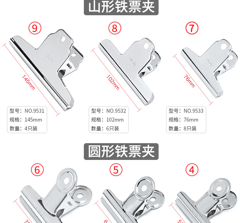 델리 철제 티켓 홀더 9521/9531 원형/산 모양 옵션 스테인레스 스틸 클립 금융 영수증 금속 티켓 홀더 클립