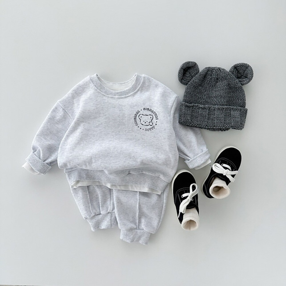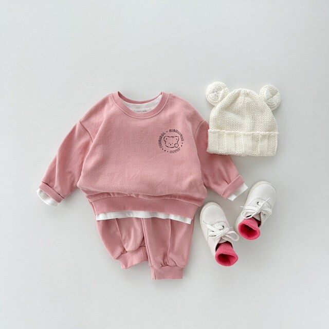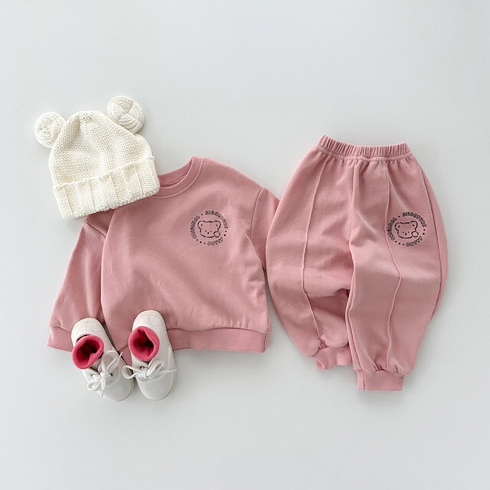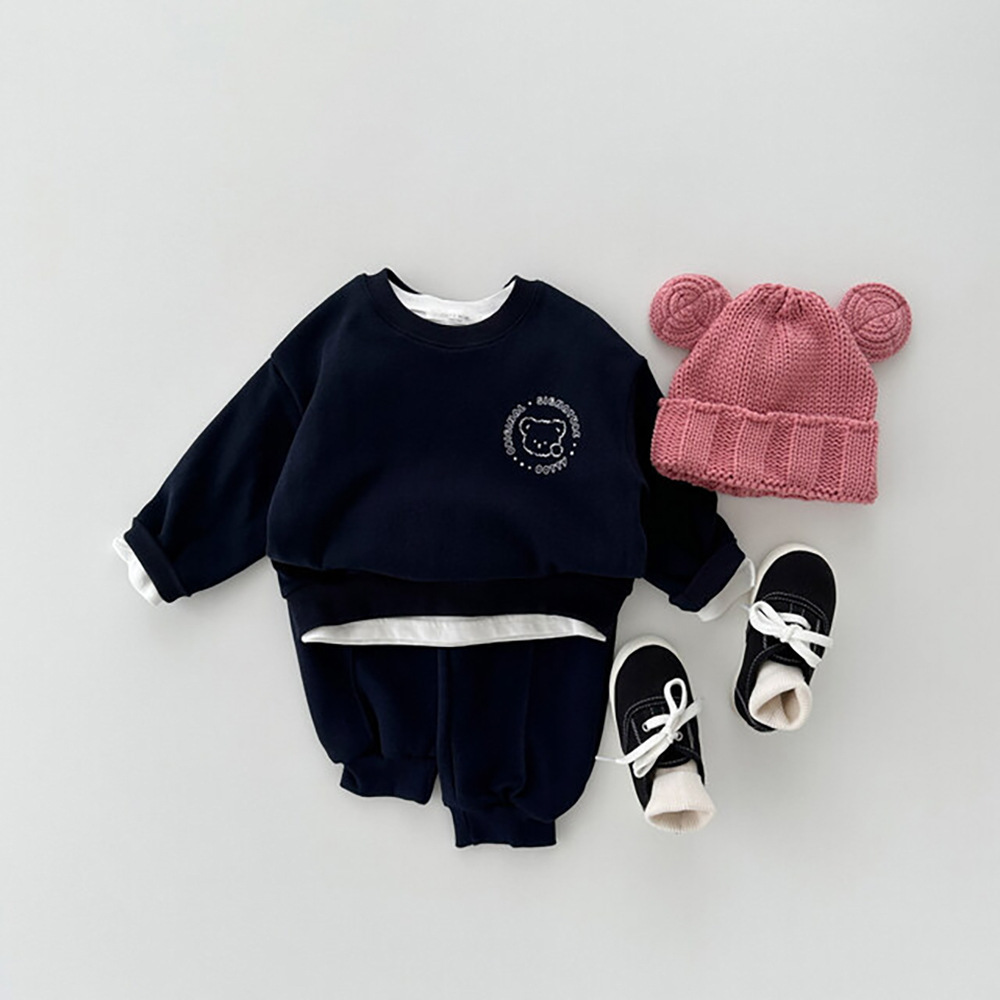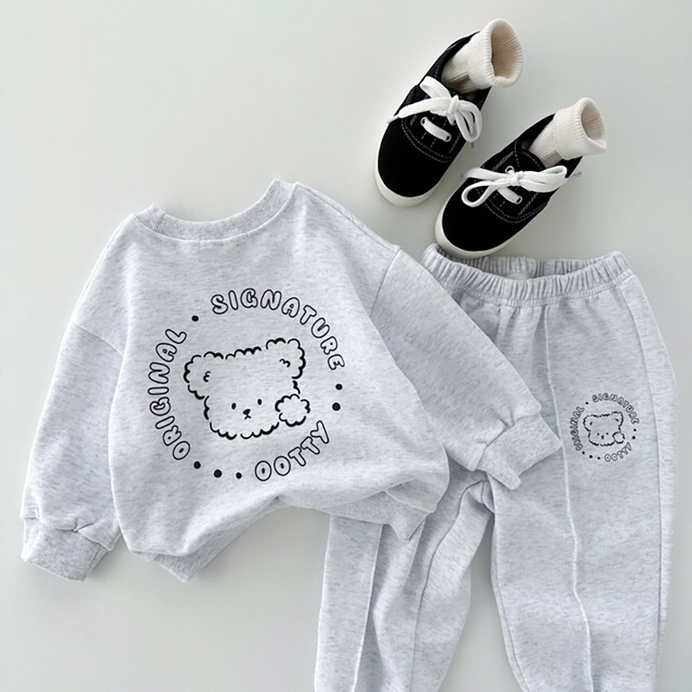 ins韩版春秋新款男女婴幼童棉套装卡通小熊休闲运动卫衣两件套潮스토어 가기