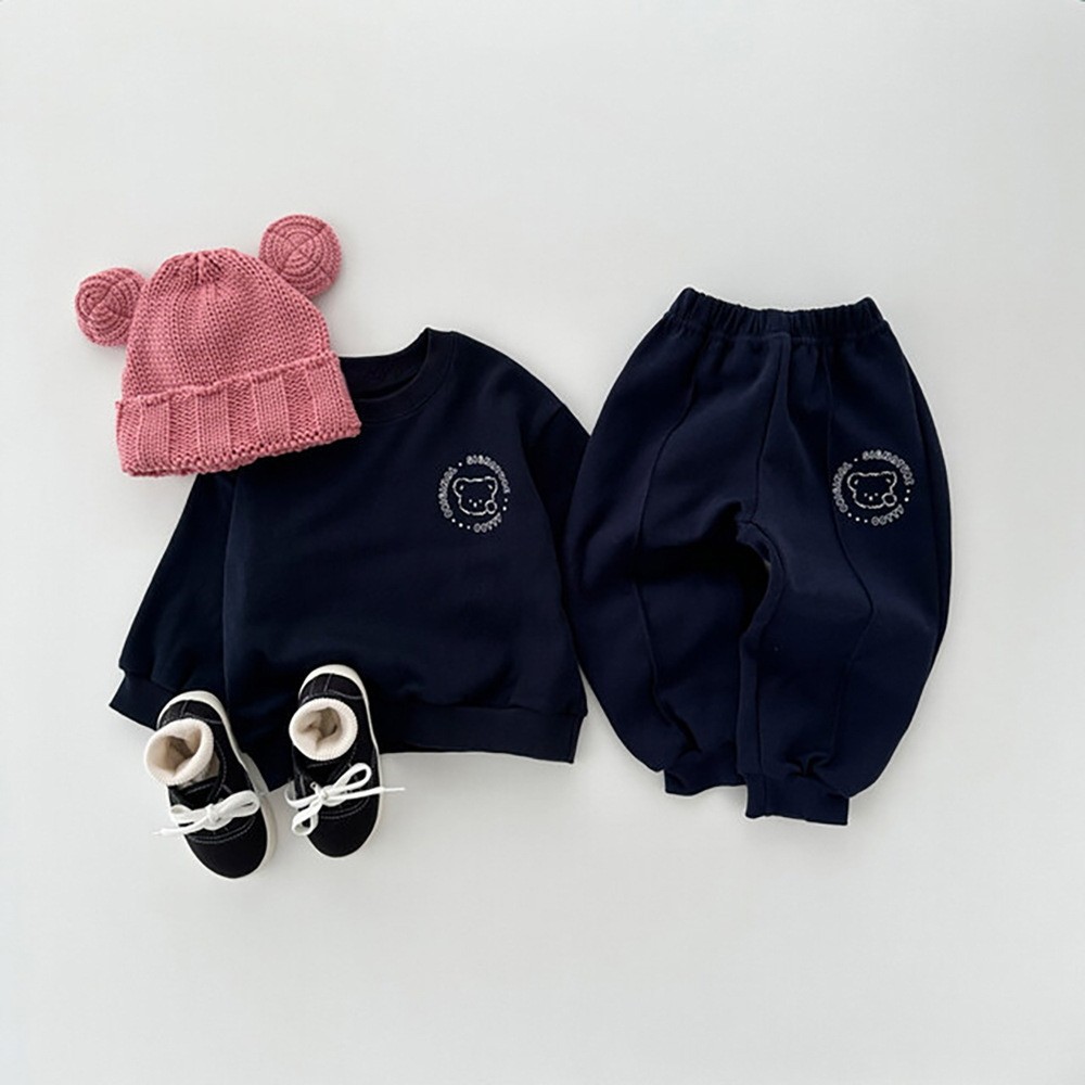 ins韩版春秋新款男女婴幼童棉套装卡通小熊休闲运动卫衣两件套潮