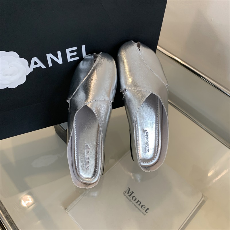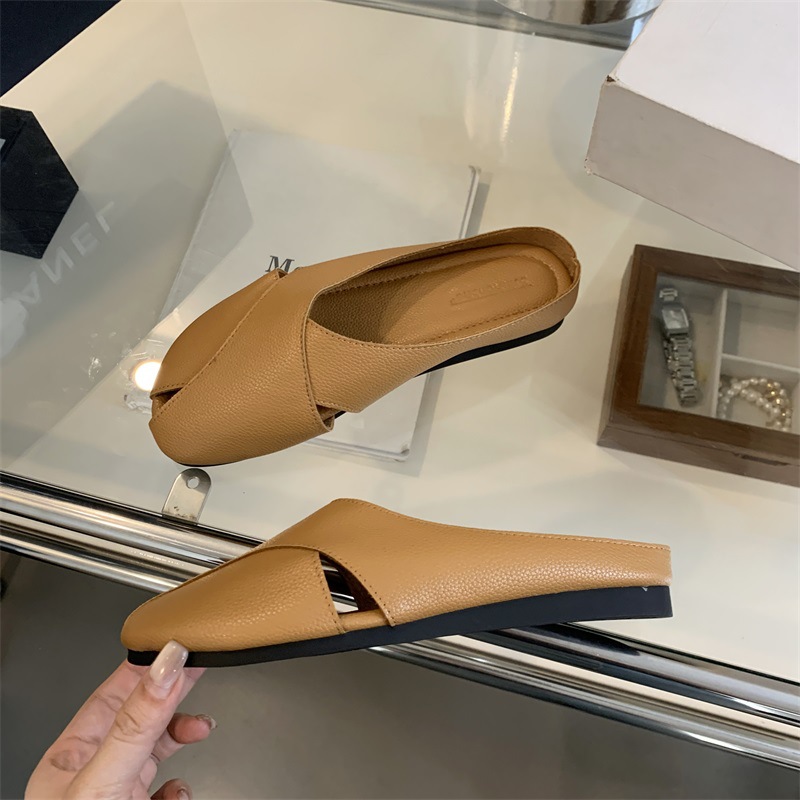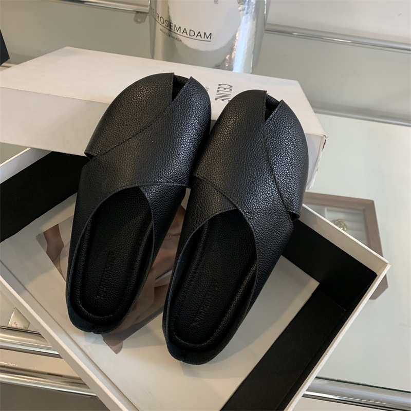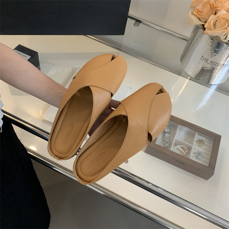 여름과 가을의 새로운 스타일 심야 스타일 프렌치 스타일 싱글 레이어 신발 부드러운 밑창 한 발 게으른 신발 디자인 센스 할로우 바오투 하프 슬리퍼