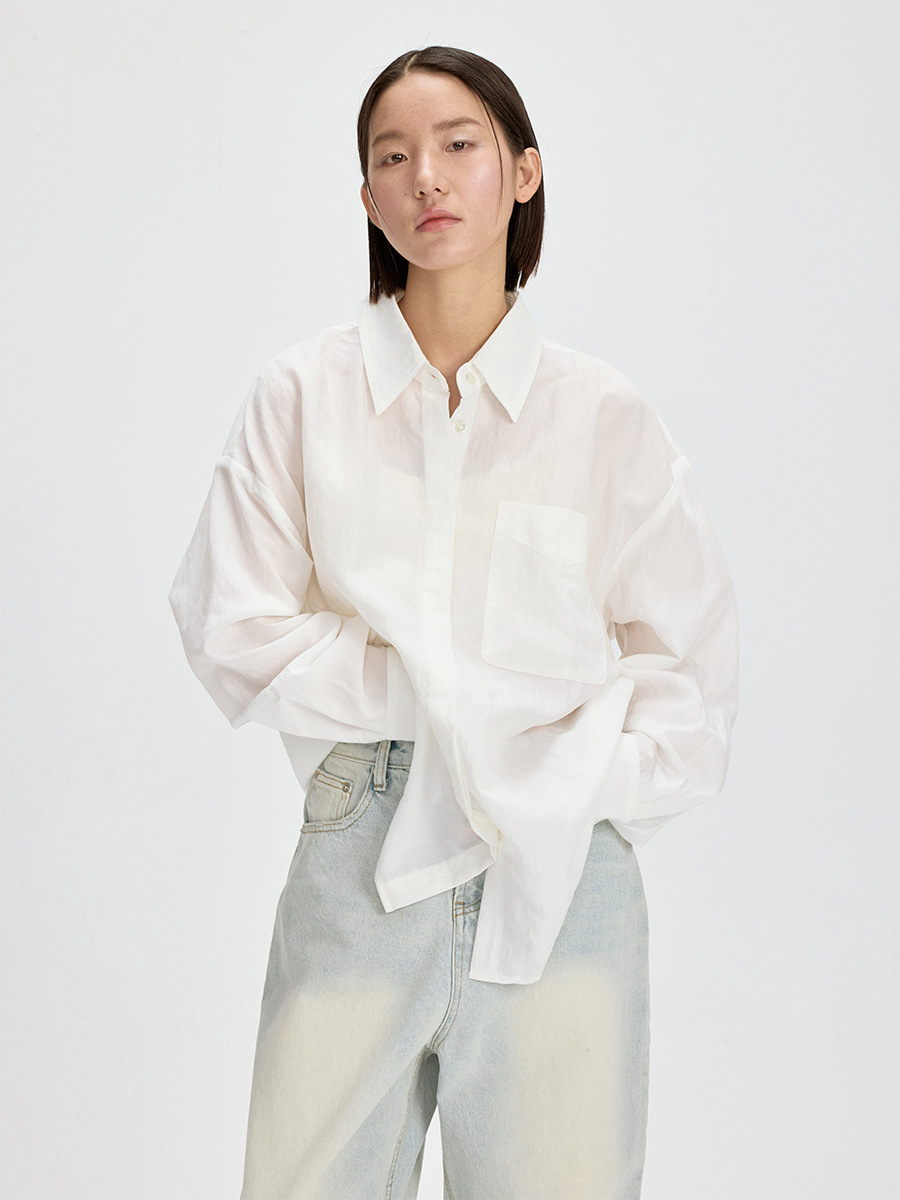 Ai&Nancy 13행 2025 여름 편안하고 캐주얼한 분위기의 통근용 루즈핏 텐셀 긴팔 셔츠 30807스토어 가기