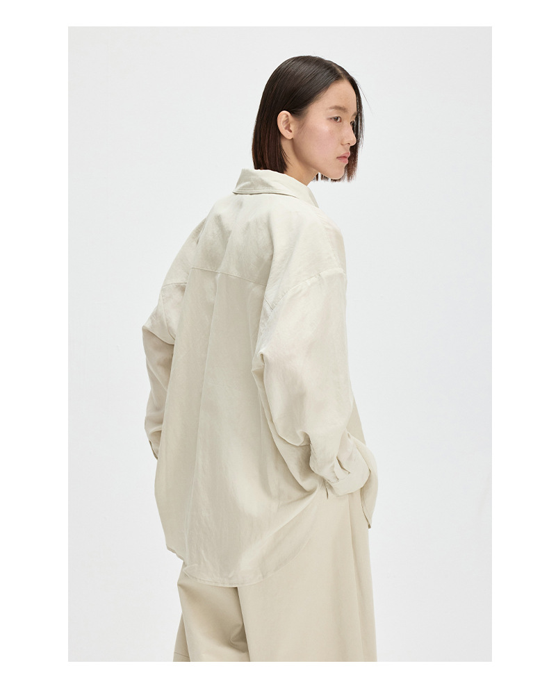 Ai&Nancy 13행 2025 여름 편안하고 캐주얼한 분위기의 통근용 루즈핏 텐셀 긴팔 셔츠 30807