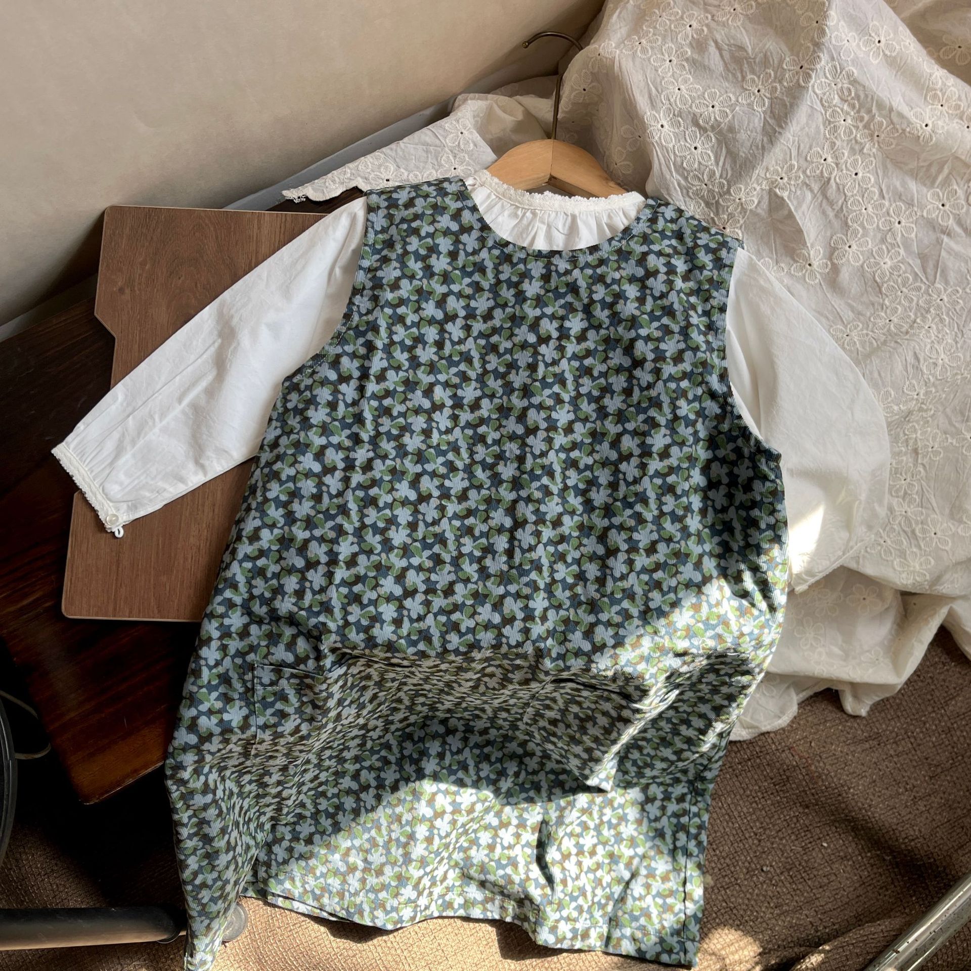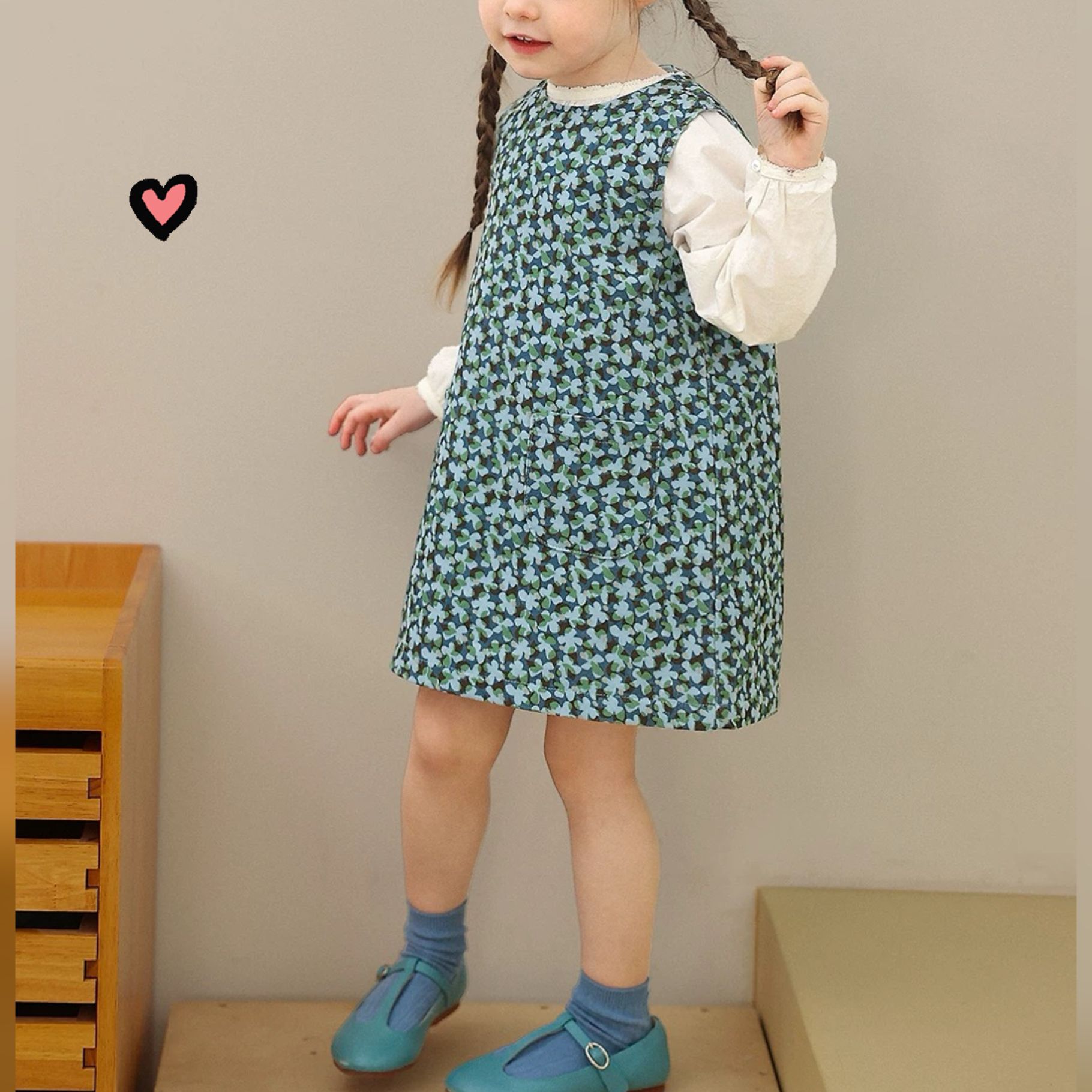 재고 있음~2025년 여아 가을 신상 꽃무늬 조끼 원피스 아동 봄 여름 스타일리시 순면 스커트 세트