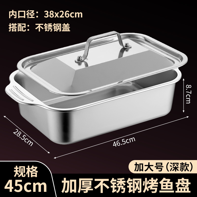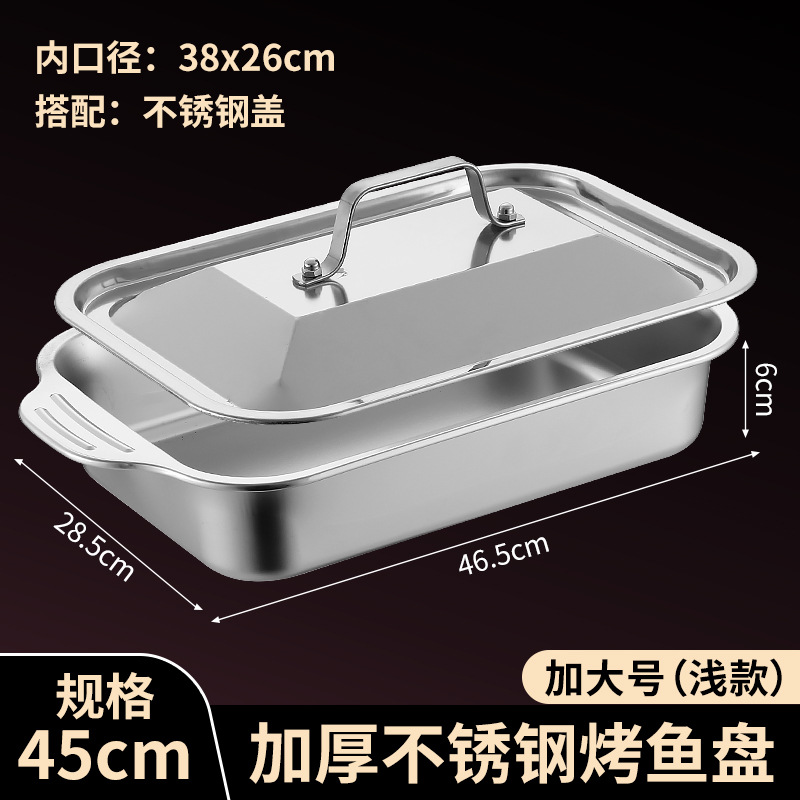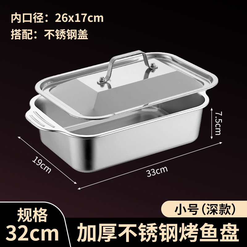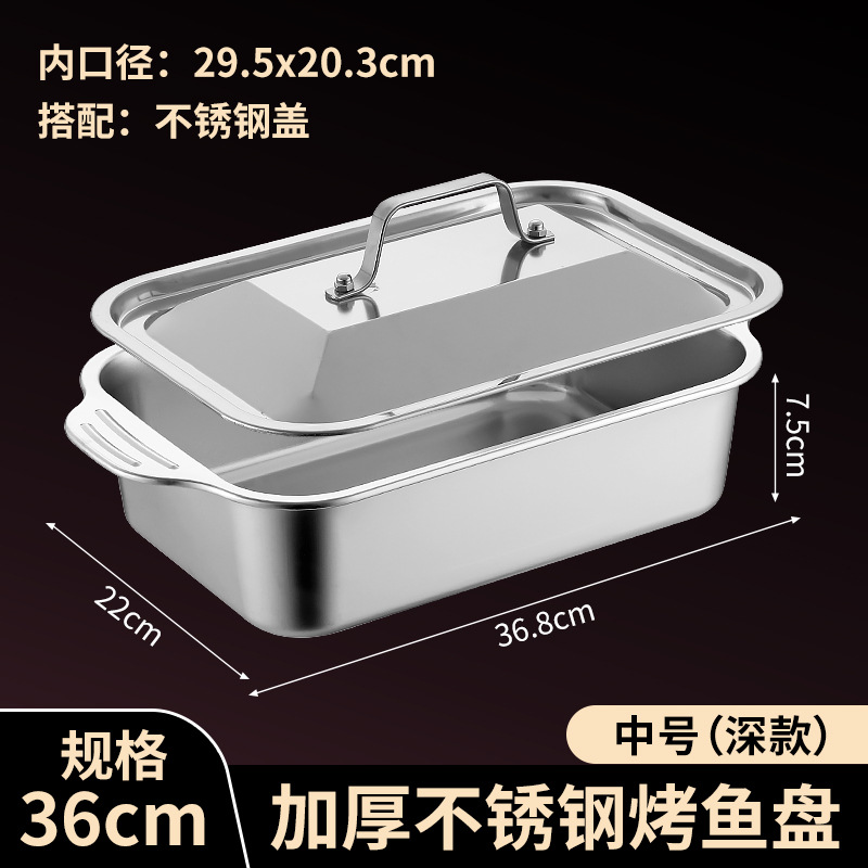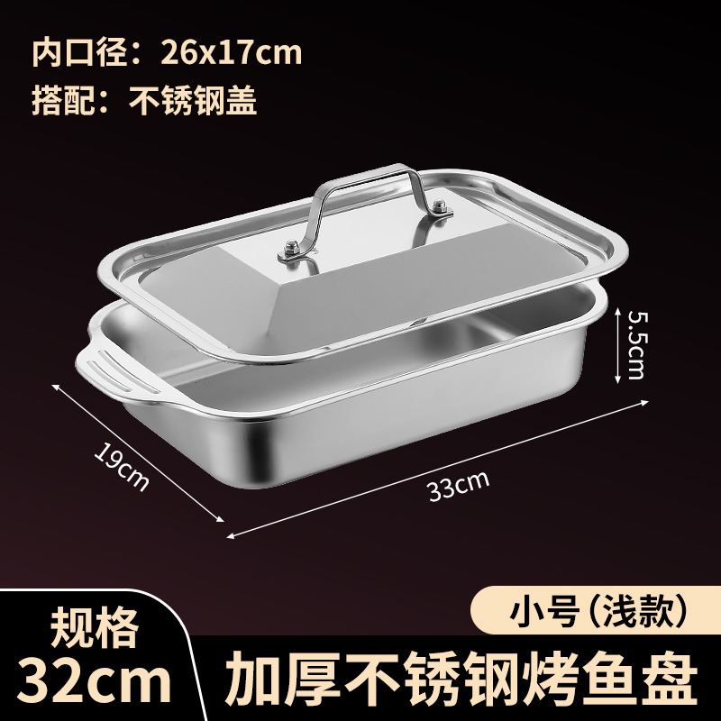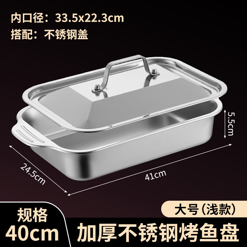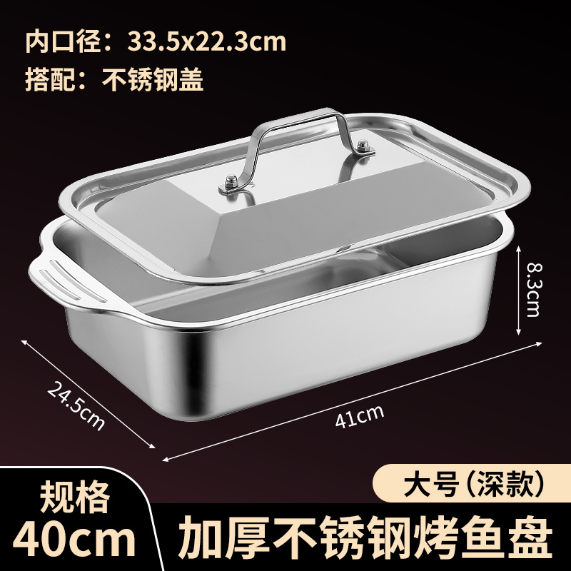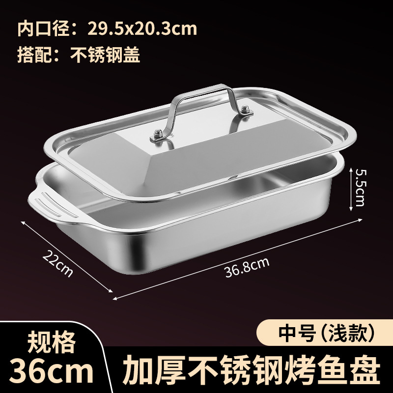 국경 간 바이나우랄 스테인레스 스틸 구운 생선 쟁반 가정용 직사각형 생선 트레이 뚜껑 상업용 두꺼운 비 스틱 바베큐 트레이스토어 가기