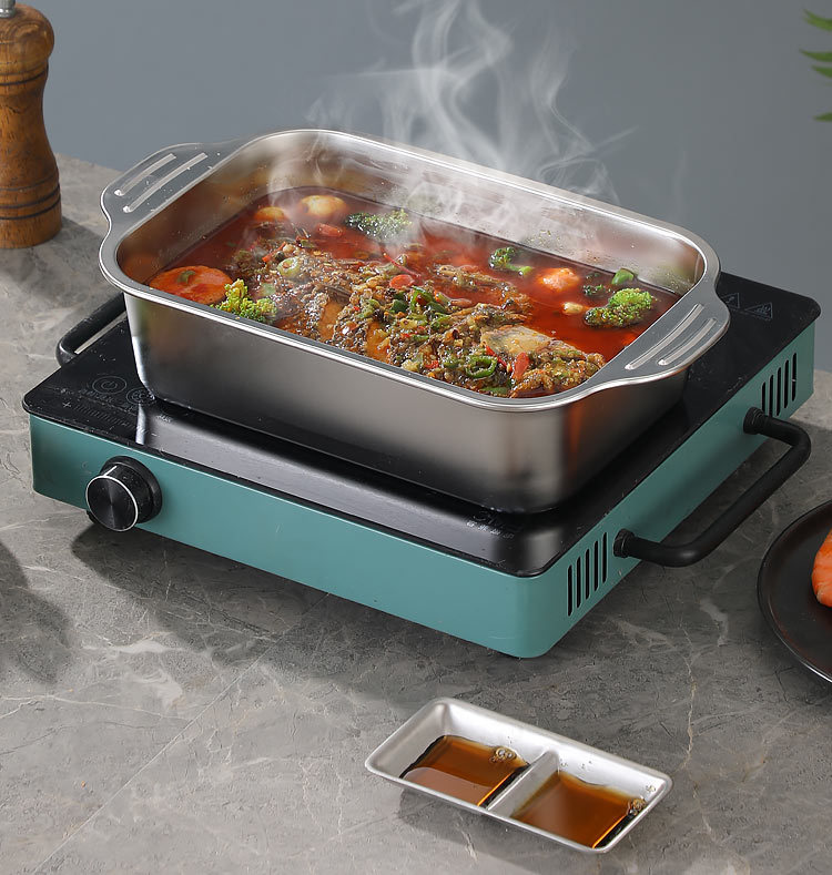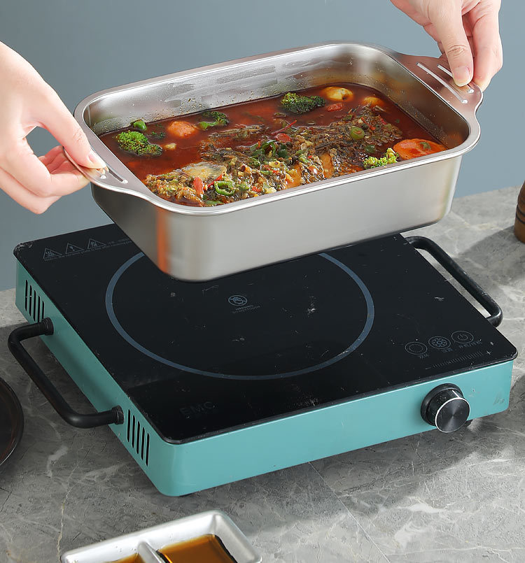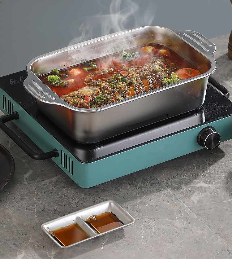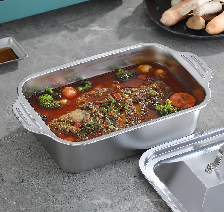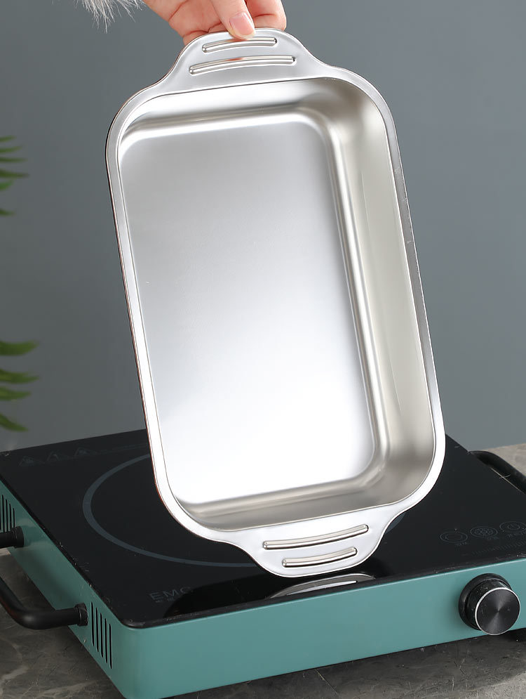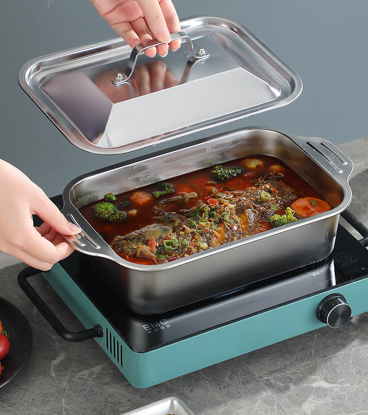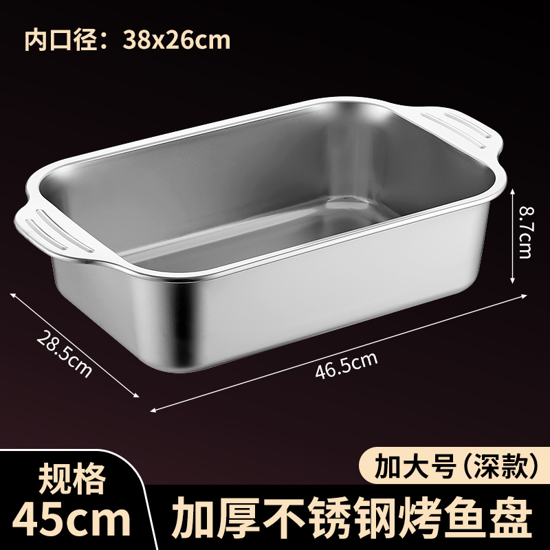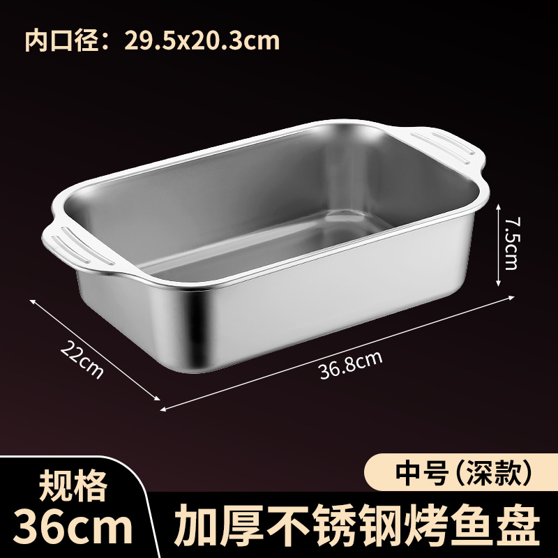 국경 간 바이나우랄 스테인레스 스틸 구운 생선 쟁반 가정용 직사각형 생선 트레이 뚜껑 상업용 두꺼운 비 스틱 바베큐 트레이스토어 가기