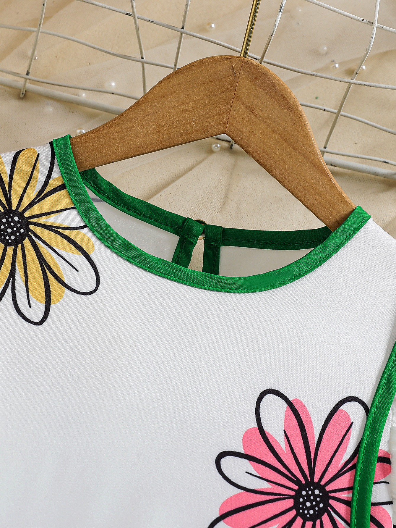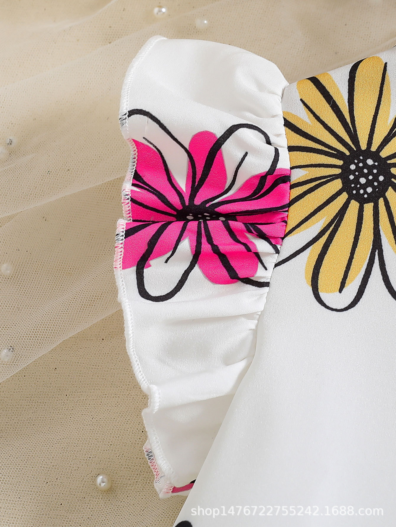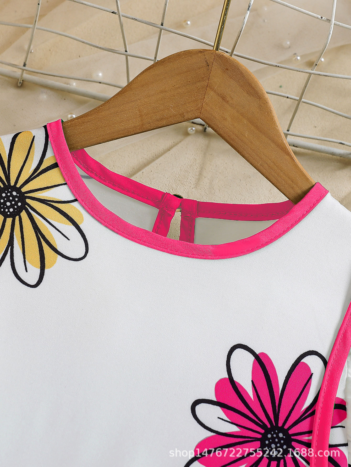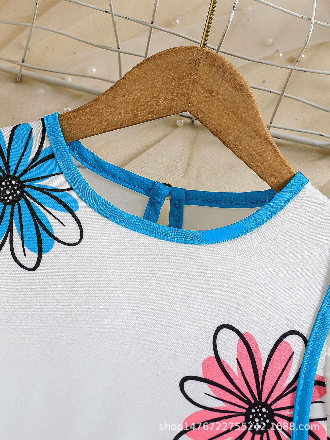 국경 간 유럽과 미국의 소녀 컬러 꽃 인쇄 작은 비행 소매 리어 칼라 워터 드롭 버클 캐주얼 느슨한 원피스스토어 가기
