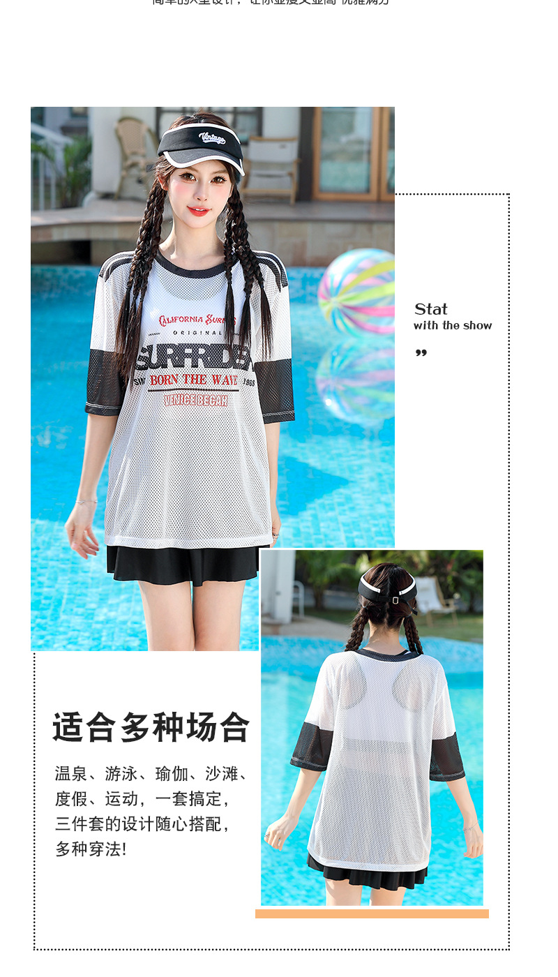수영복 여성 분할 보수 2025 새로운 해변 휴가 3 피스 선 스크린 고급 육체 커버 블라우스 수영복스토어 가기
