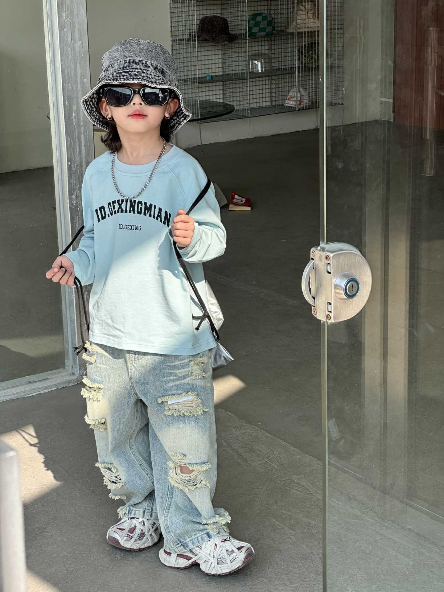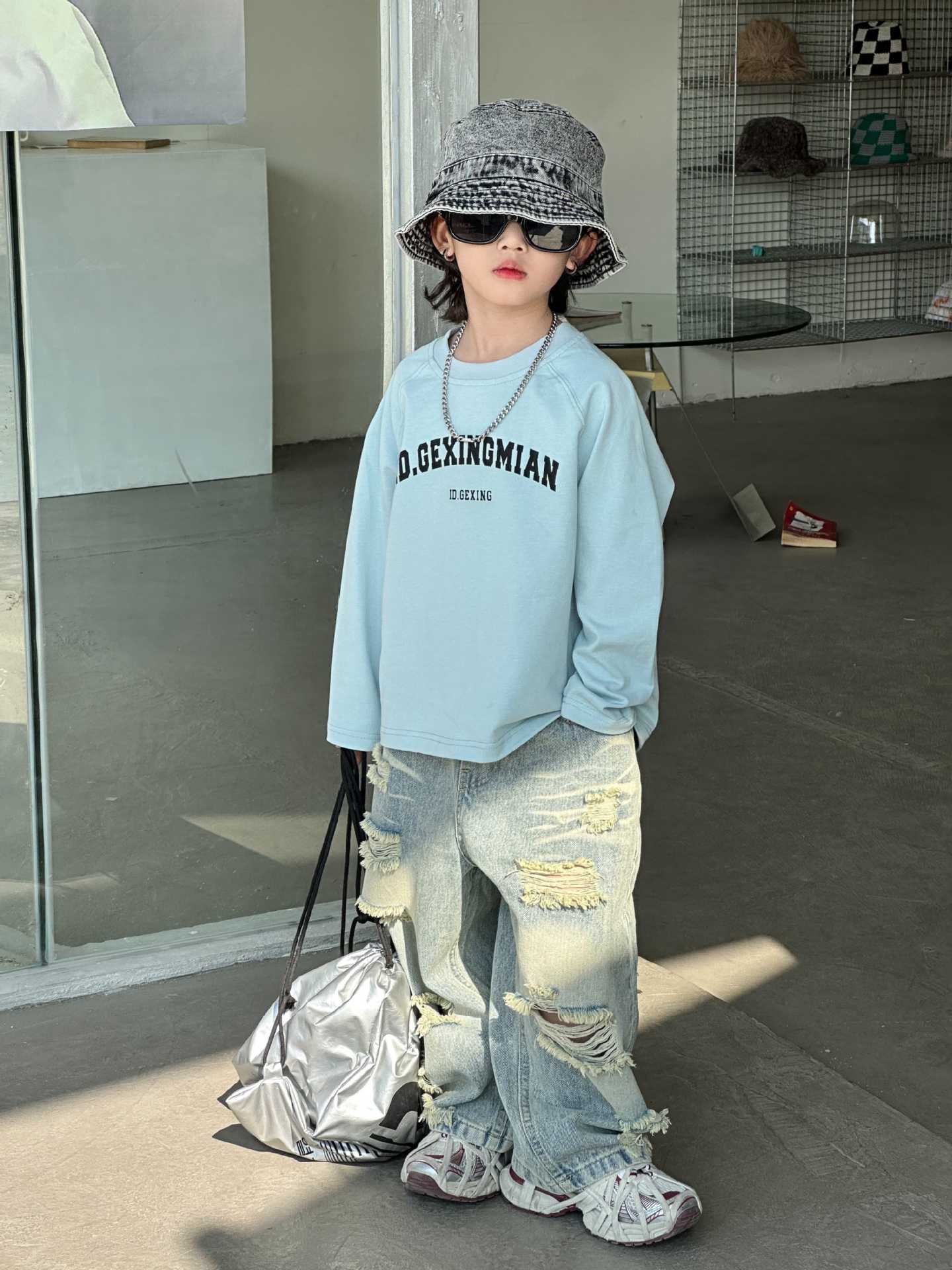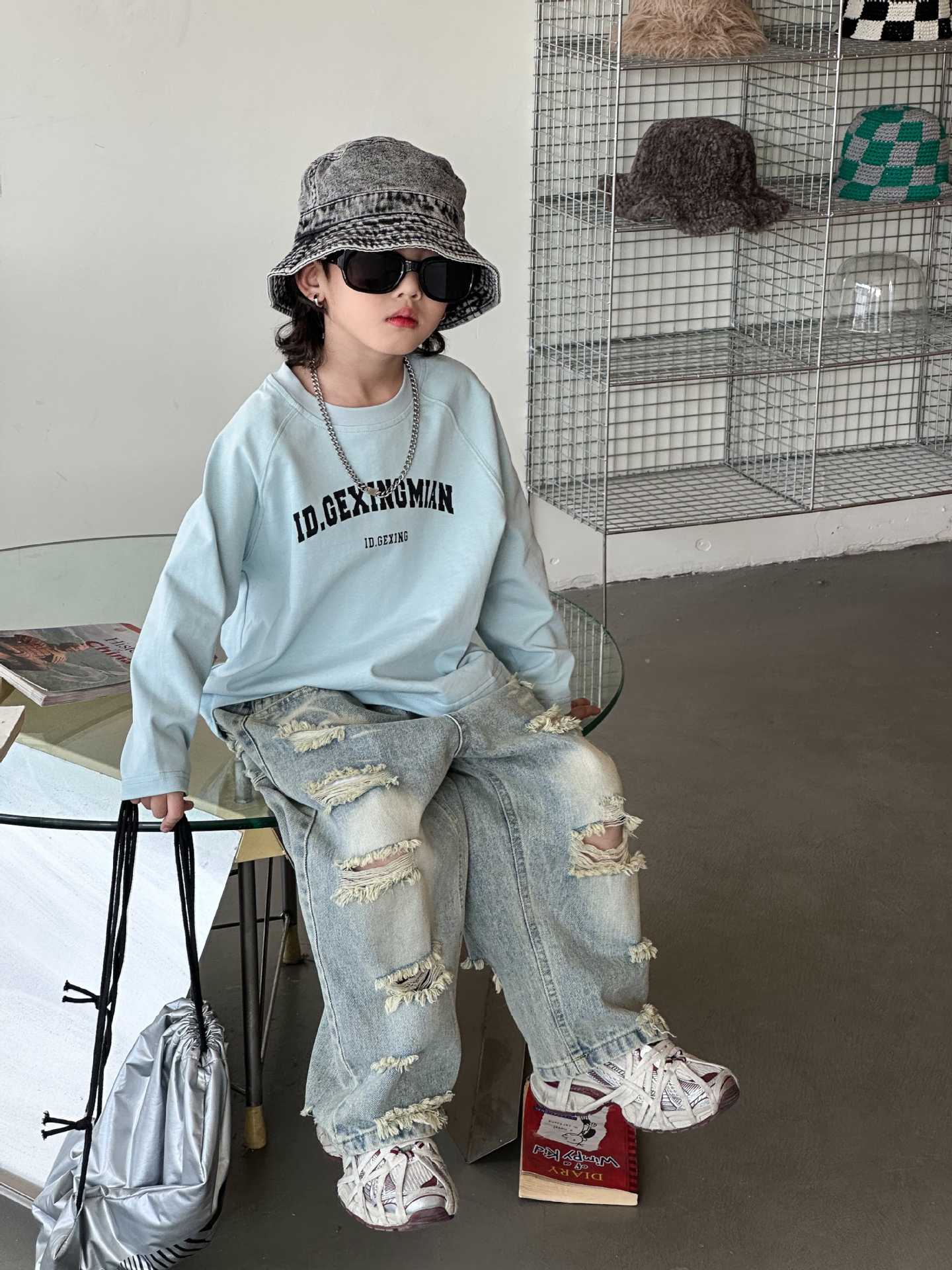 2025 년 봄 새로운 어린이 티셔츠 소년과 어린이 긴 소매 최고 유행 다목적 한국어 버전의 근원으로 돌아 가기