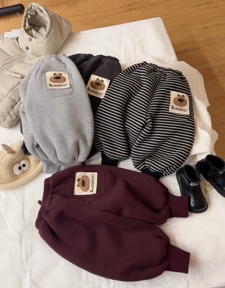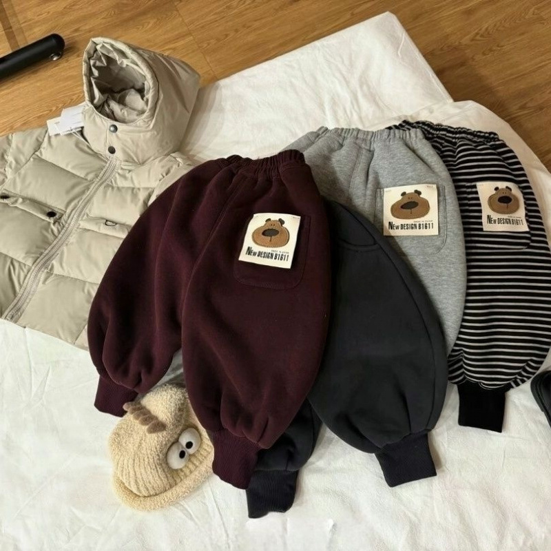 소년 기모 운동복 가을과 겨울 새로운 도착 소년 편지 라벨링 바지 어린이 두꺼운 원피스 벨벳 스포츠 바지스토어 가기