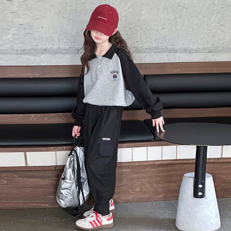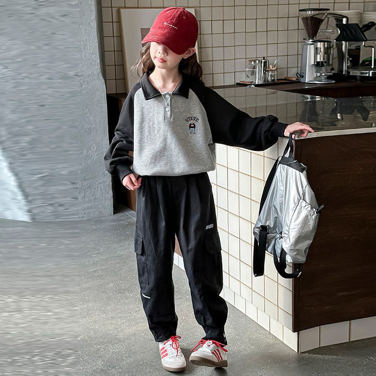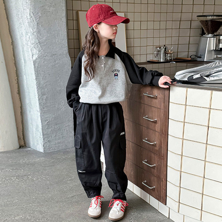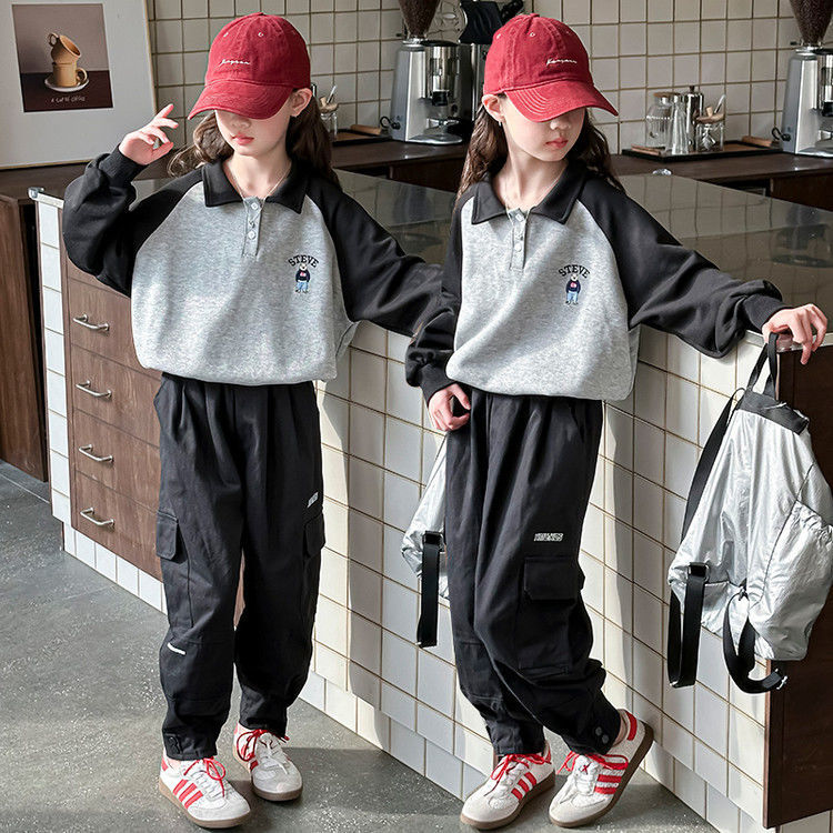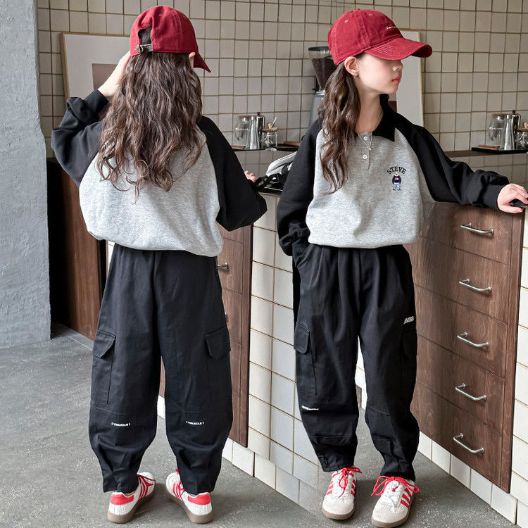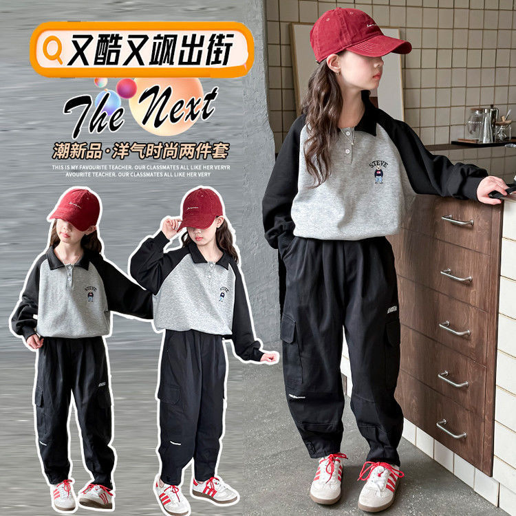 소녀 작은 곰 땀 작업 바지 세트 봄 새로운 서양 스타일 유행 두 조각 어린이 봄 패션