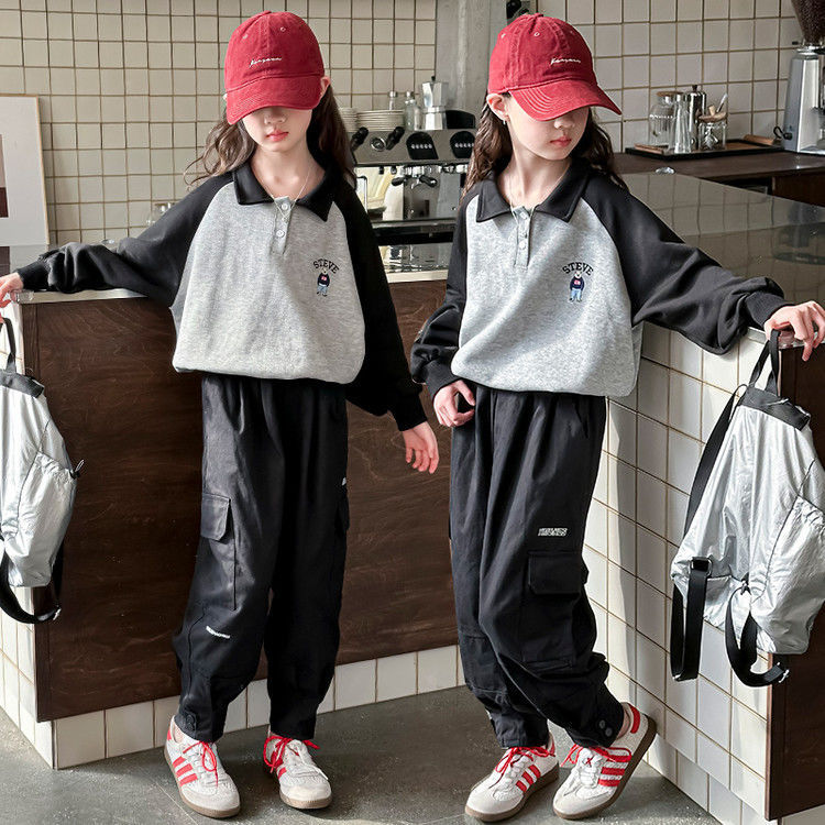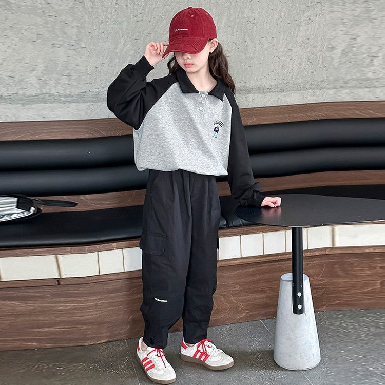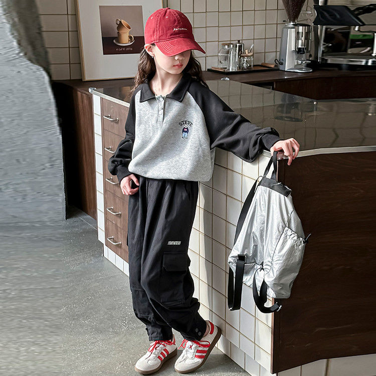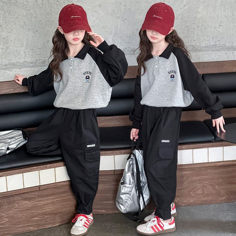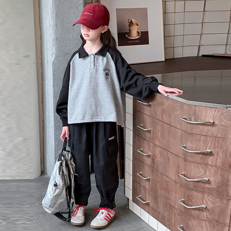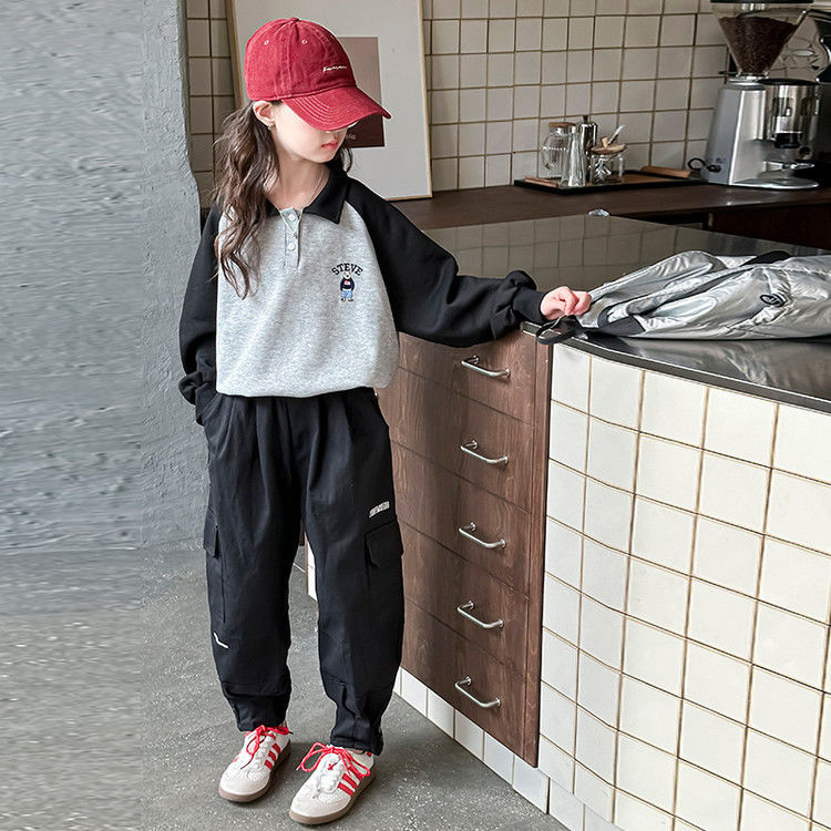 소녀 작은 곰 땀 작업 바지 세트 봄 새로운 서양 스타일 유행 두 조각 어린이 봄 패션