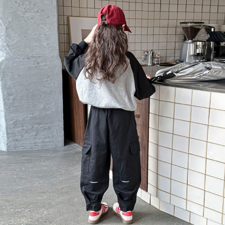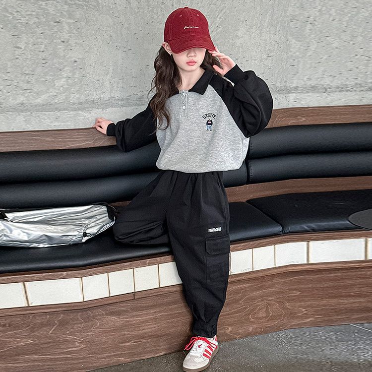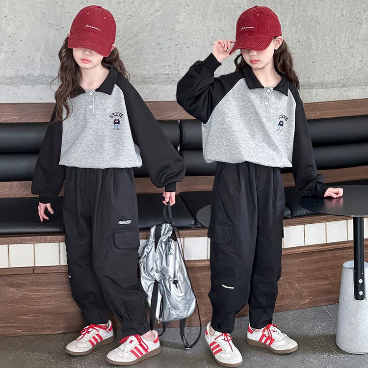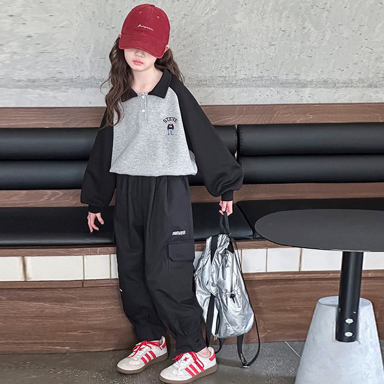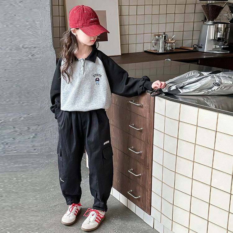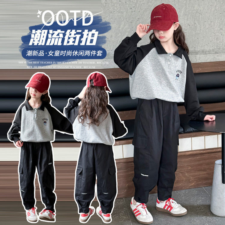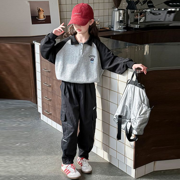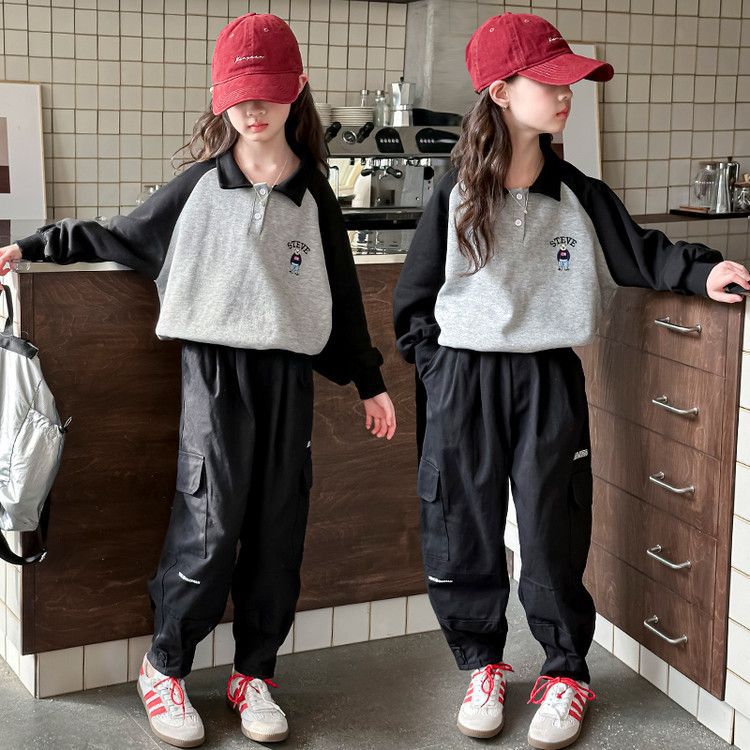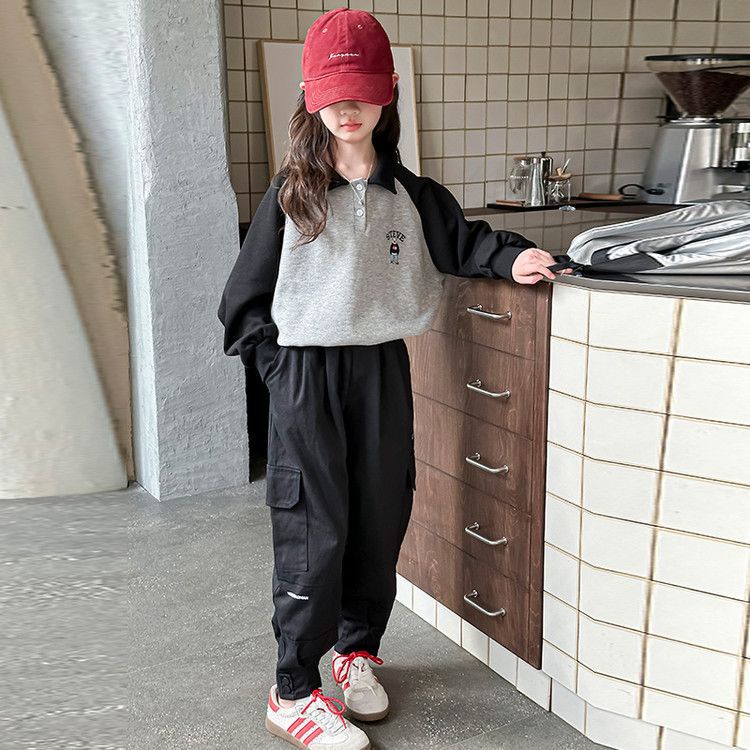소녀 작은 곰 땀 작업 바지 세트 봄 새로운 서양 스타일 유행 두 조각 어린이 봄 패션스토어 가기