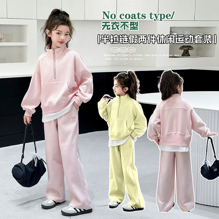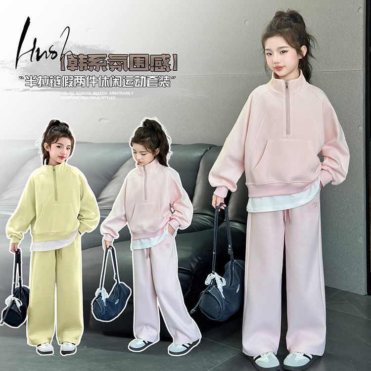 여자 세트 2025 봄 새로운 어린이 서양식 유행 한국 아동복 스포츠 레저 투피스 트렌디스토어 가기
