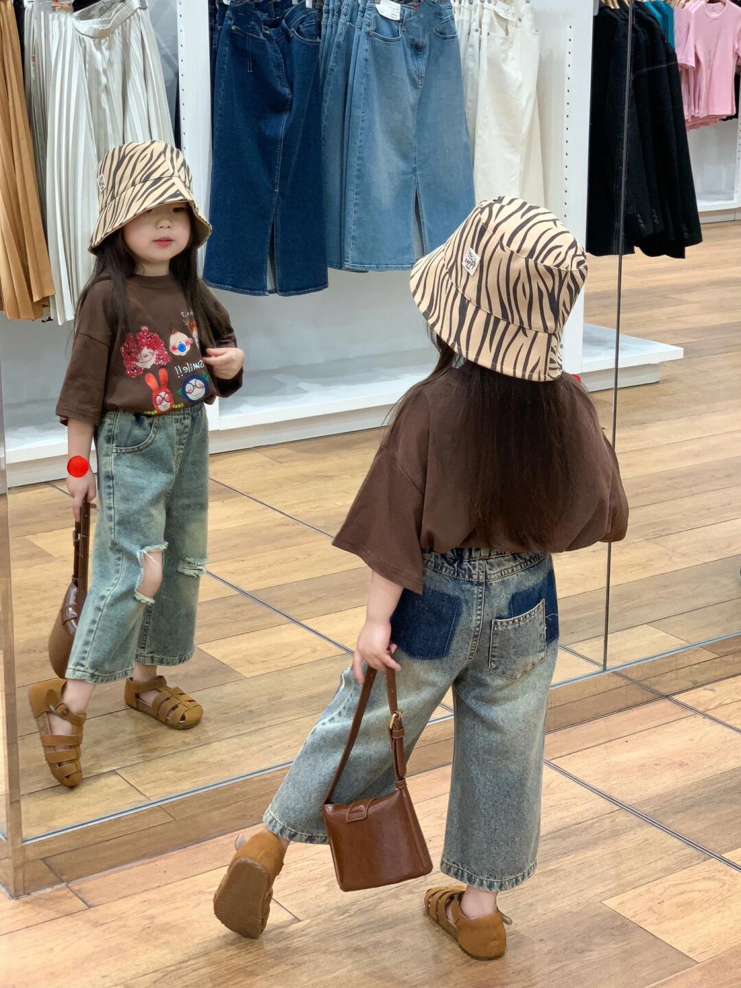 여자 캐주얼 청바지 2025 봄과 여름 여성 아기 한국 스타일 유행 구식 데님 스트레이트 바지스토어 가기