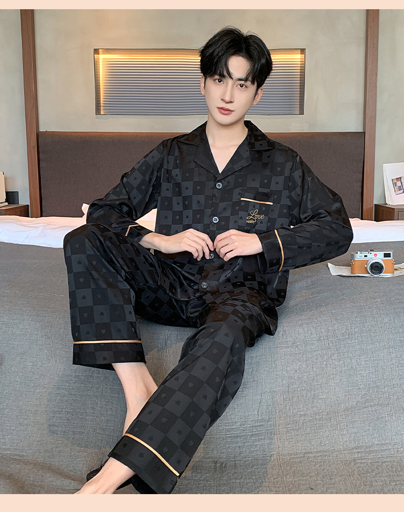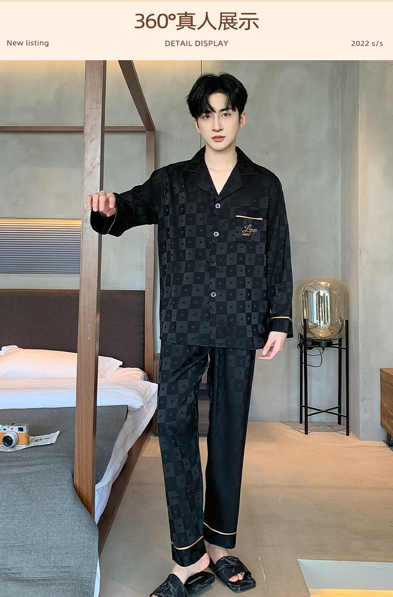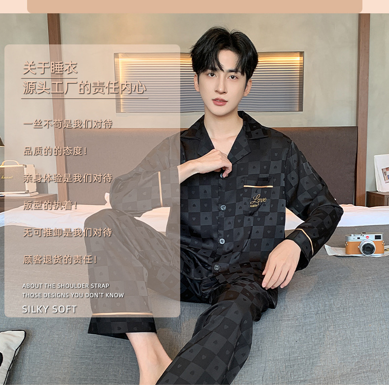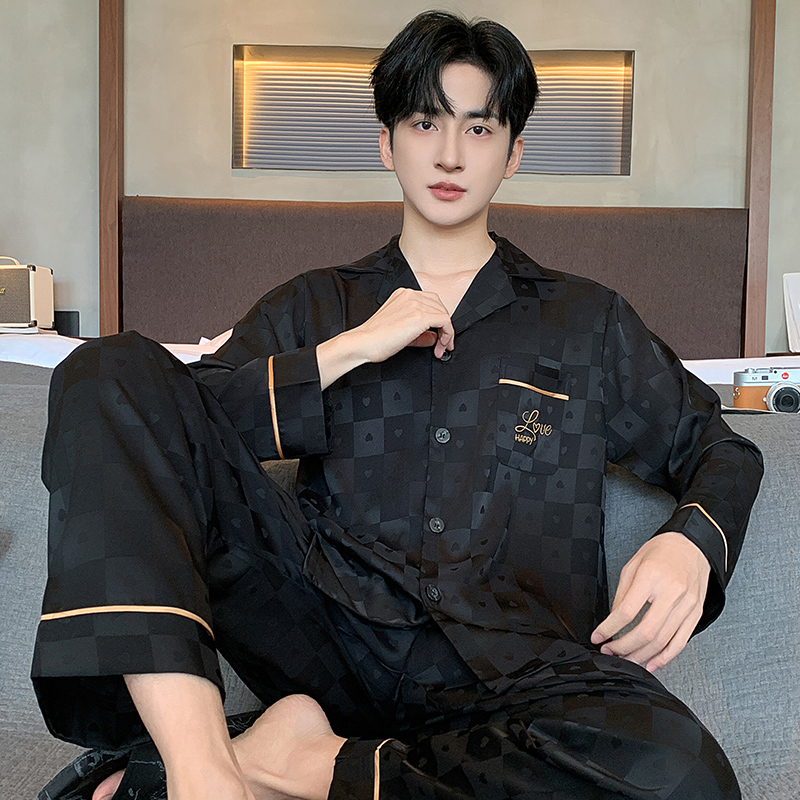 남성용 얼음 실크 잠옷 2025 새로운 봄, 가을 얇은 플러스 사이즈 플러스 사이즈 긴팔 양복 홈웨어 B1-528