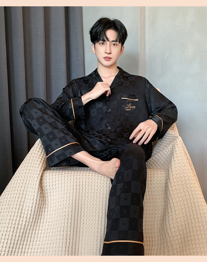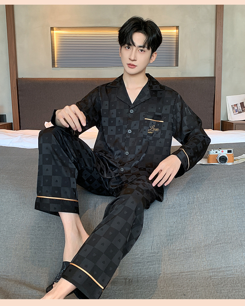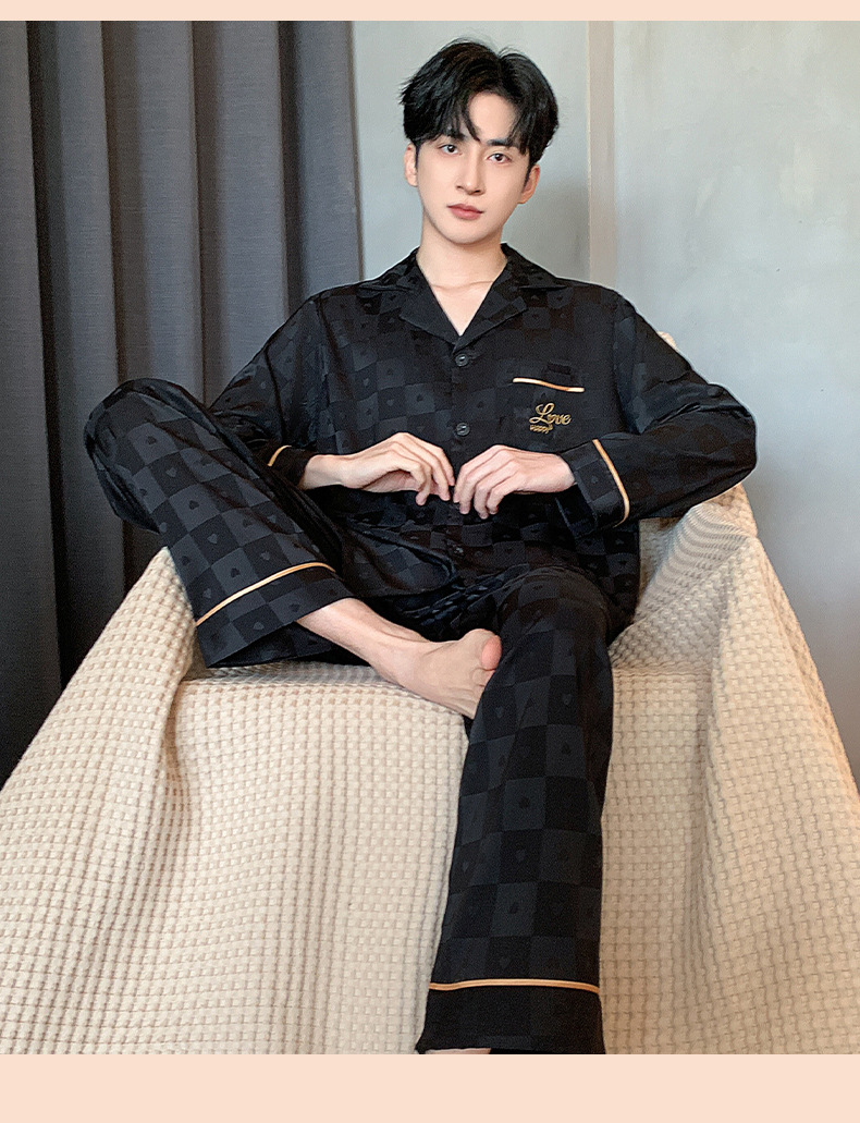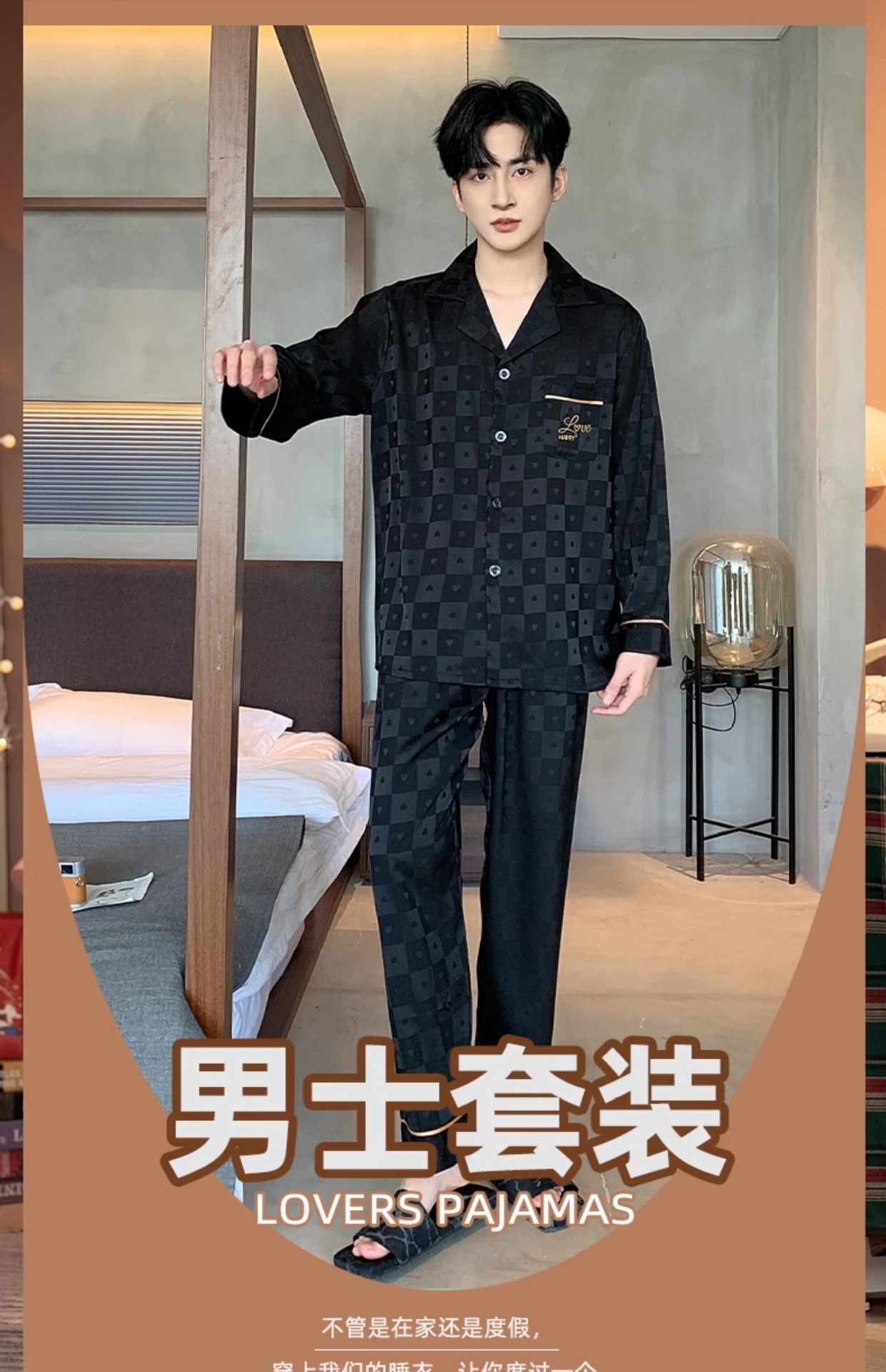 남성용 얼음 실크 잠옷 2025 새로운 봄, 가을 얇은 플러스 사이즈 플러스 사이즈 긴팔 양복 홈웨어 B1-528