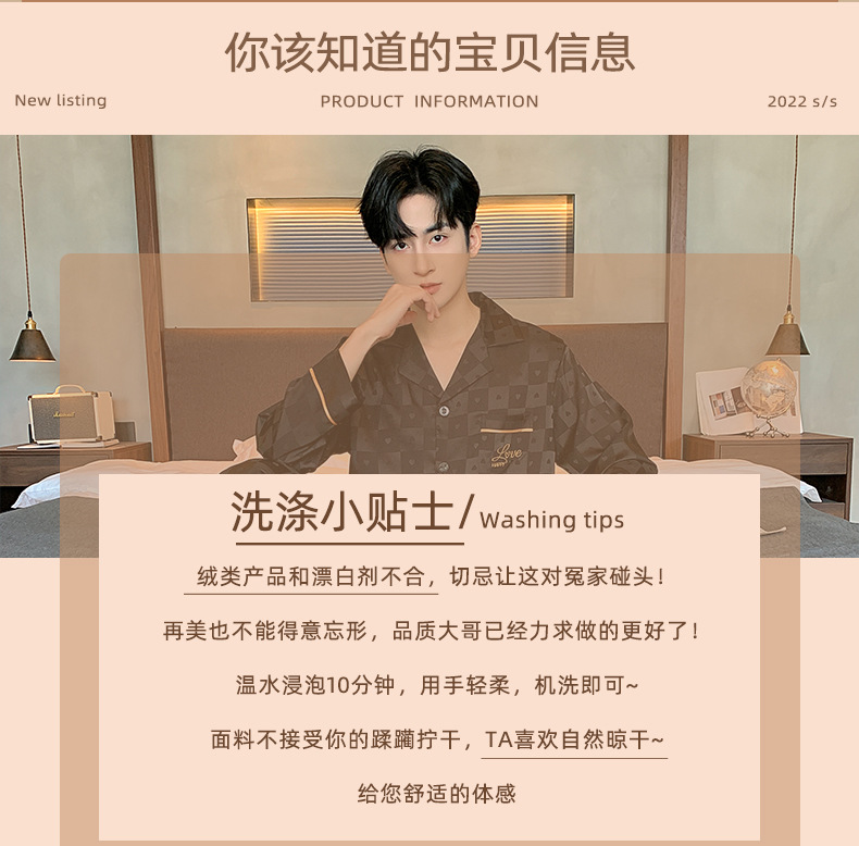 남성용 얼음 실크 잠옷 2025 새로운 봄, 가을 얇은 플러스 사이즈 플러스 사이즈 긴팔 양복 홈웨어 B1-528스토어 가기