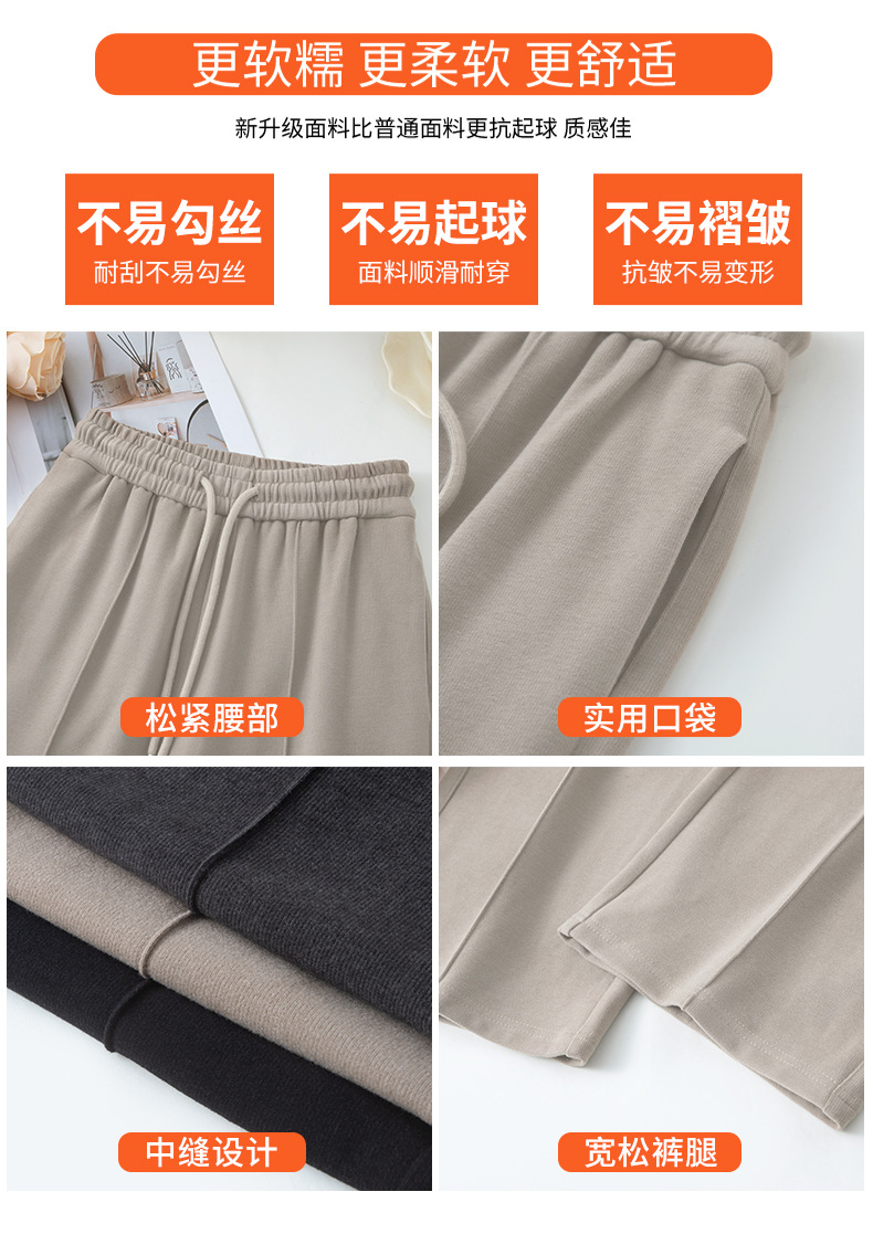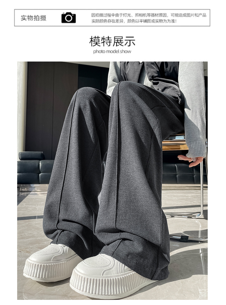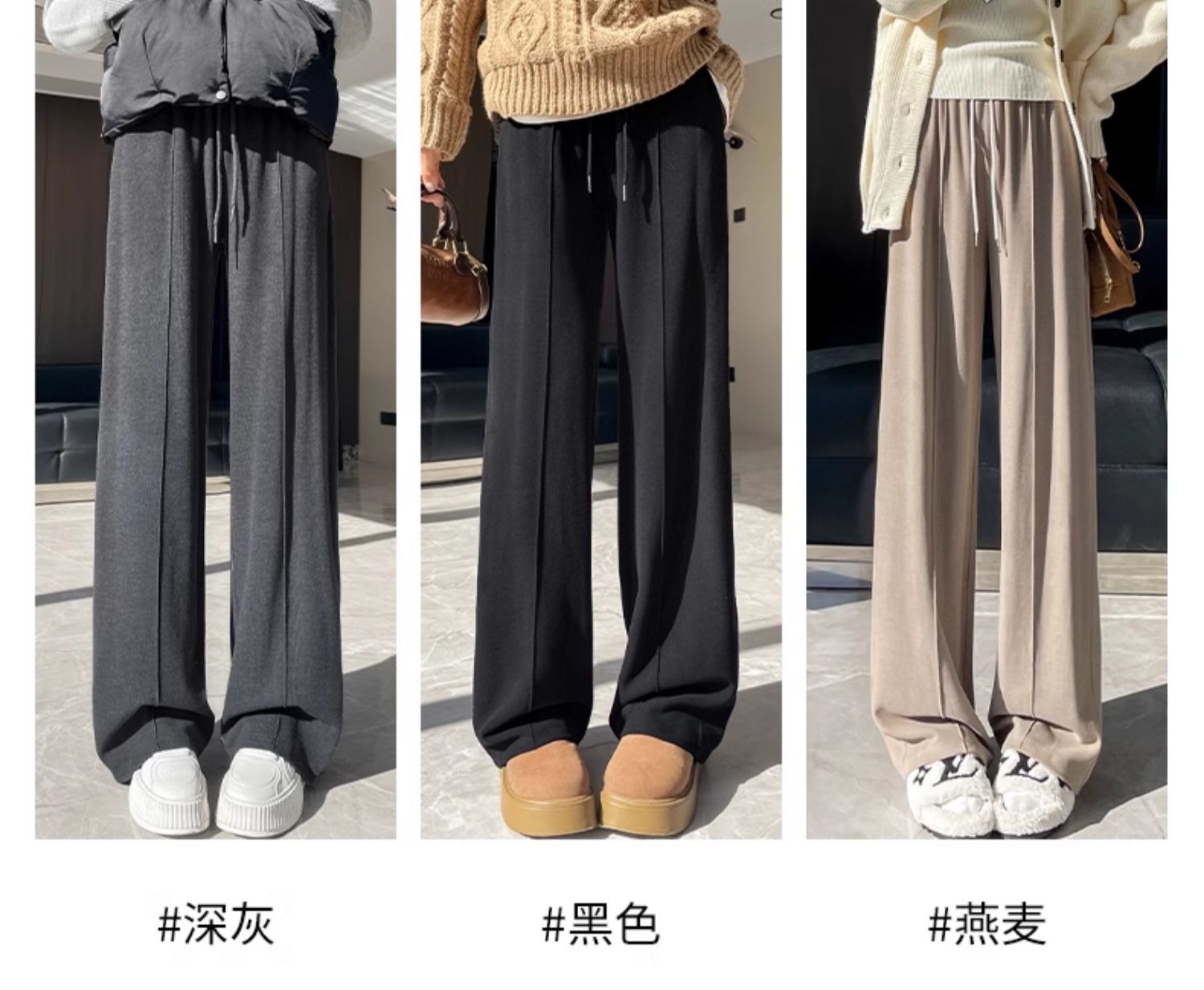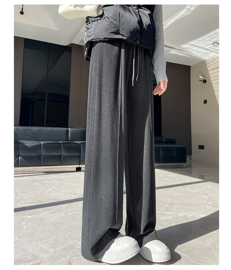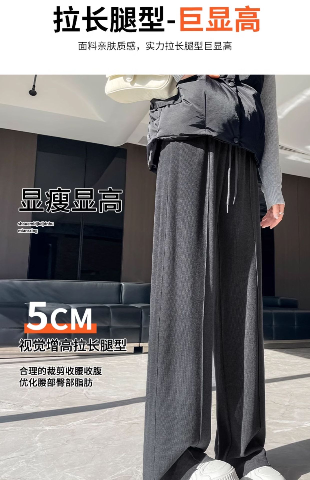 2025 새로운 그레이 라인 키가 큰 넓은 다리 바지 여성용 봄과 가을 느슨한 벨벳 높은 허리 스트레이트 포도상 쌀 바지