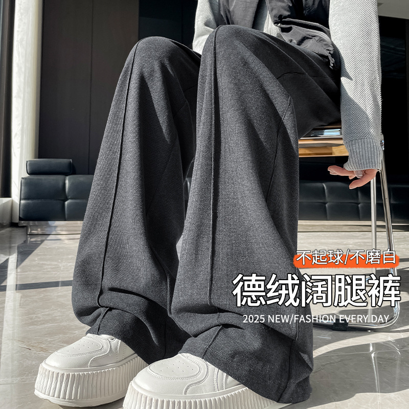 2025 새로운 그레이 라인 키가 큰 넓은 다리 바지 여성용 봄과 가을 느슨한 벨벳 높은 허리 스트레이트 포도상 쌀 바지스토어 가기