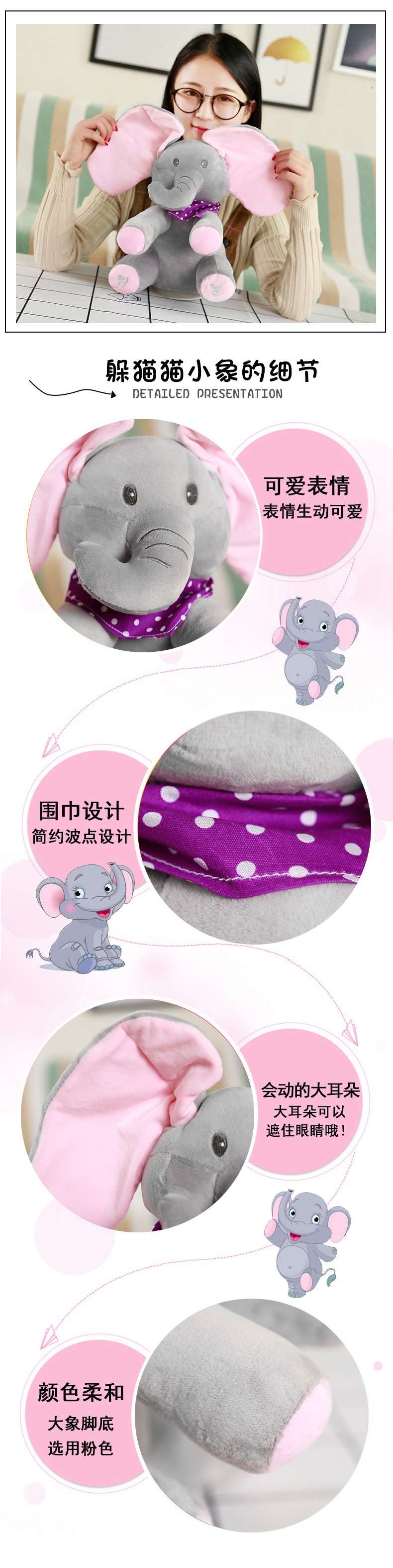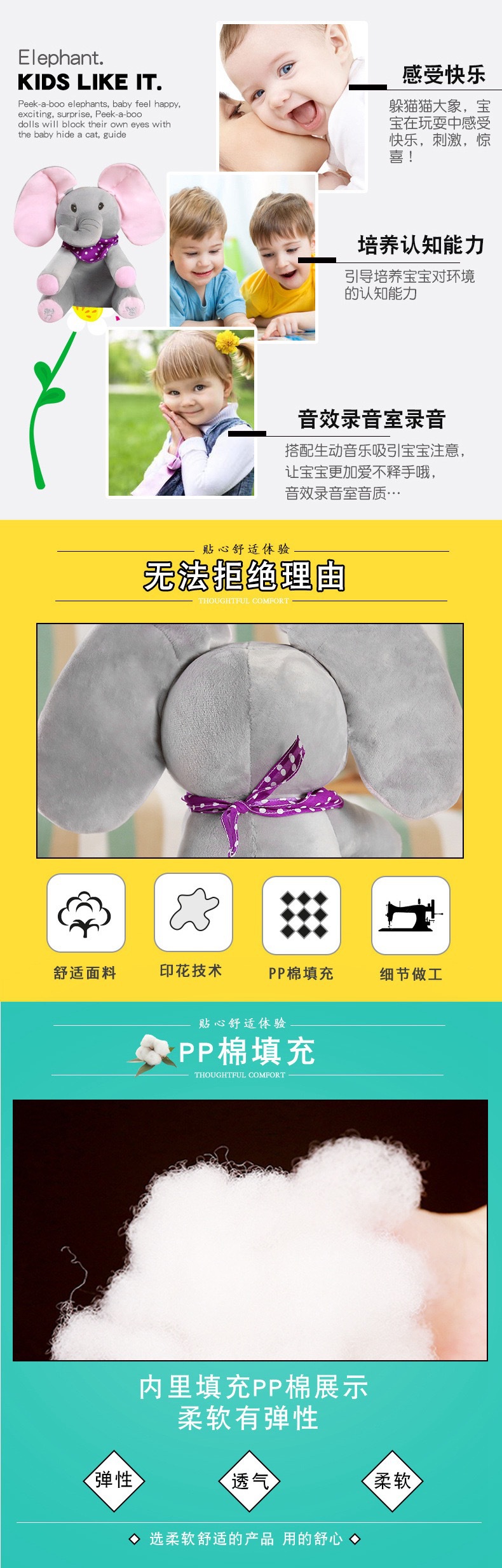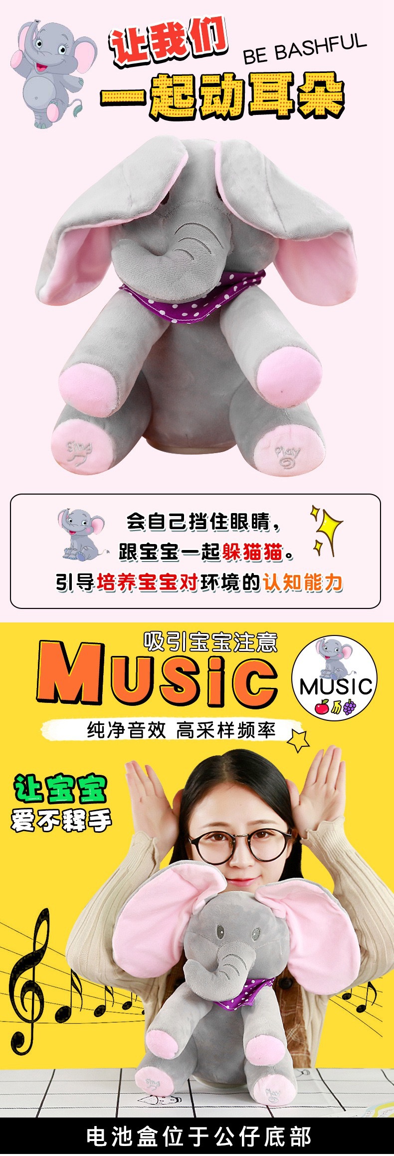 Peek-a-boo 노래 코끼리 인형 Pacifying 아기 인형 조기 교육 어린이 노래 봉제 장난감 동서 아기 유물스토어 가기