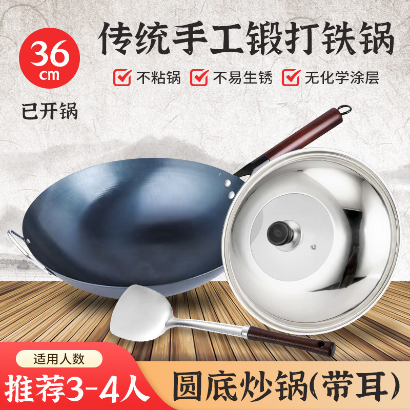 • 【36CM】둥근 바닥 + 귀 없는 손잡이 + 냄비 뚜껑 + 주걱 (냄비가 열려 있음)