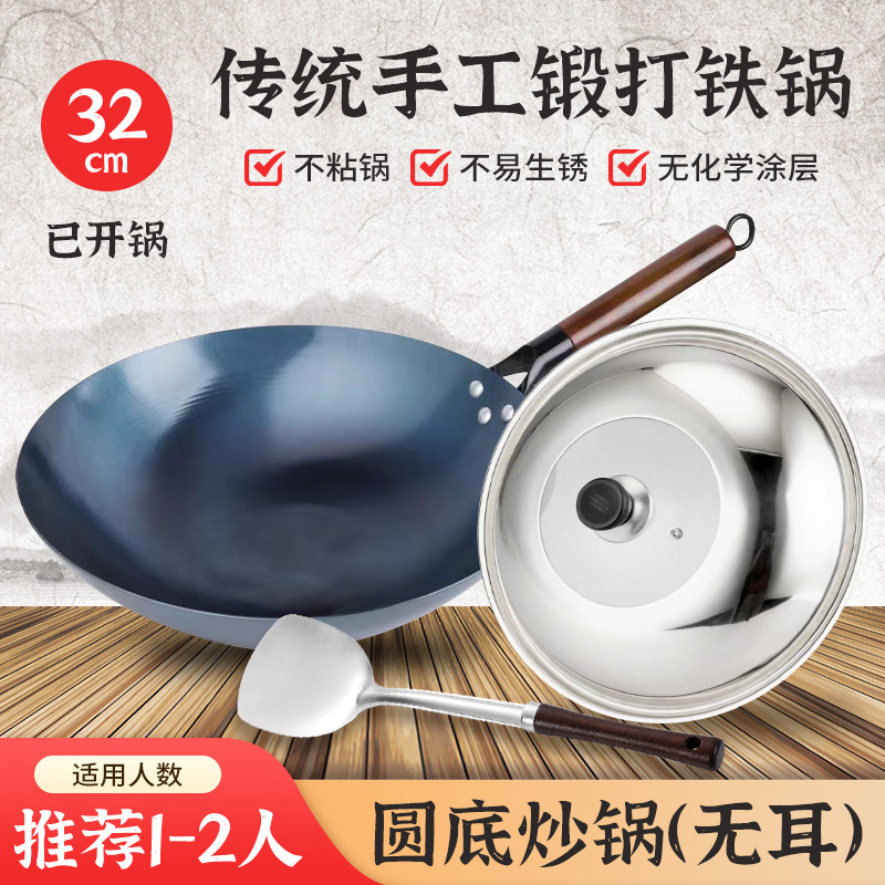 • 【32CM】둥근 바닥 + 귀 없는 손잡이 + 냄비 뚜껑(냄비가 열려 있음)