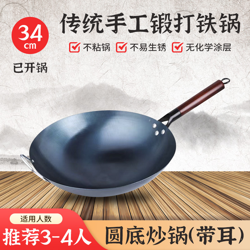 • 【34CM】둥근 바닥 + 귀가 달린 손잡이 + 냄비 뚜껑(냄비가 열려 있음)
