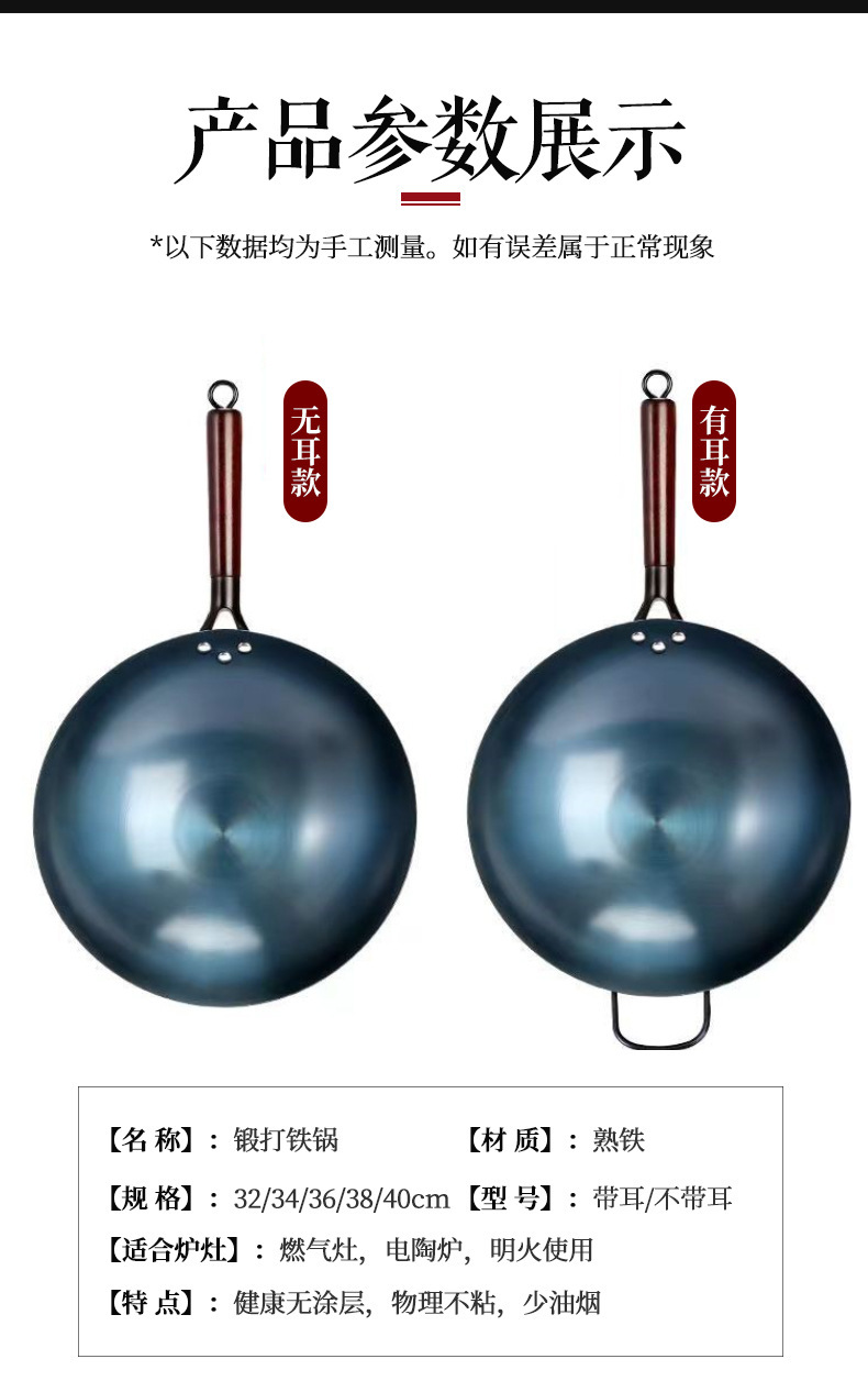 • 【38CM】둥근 바닥 + 귀가 달린 손잡이(냄비가 열려 있음)