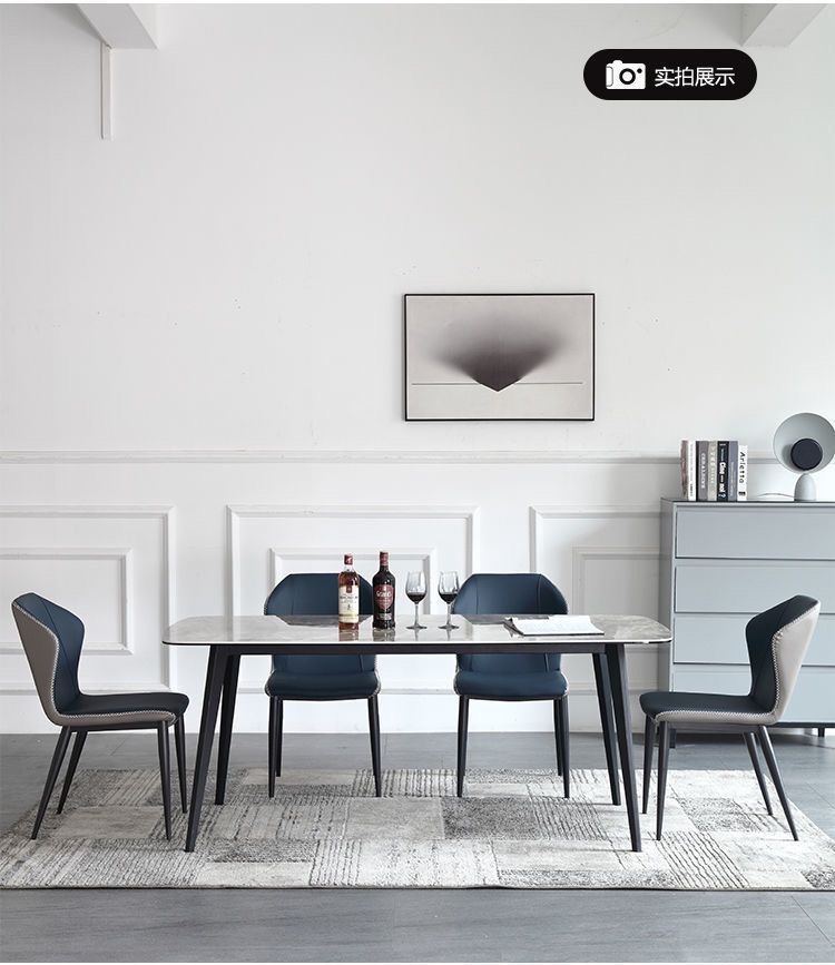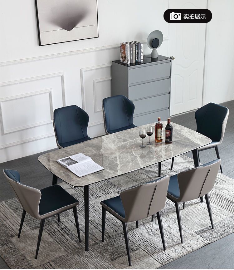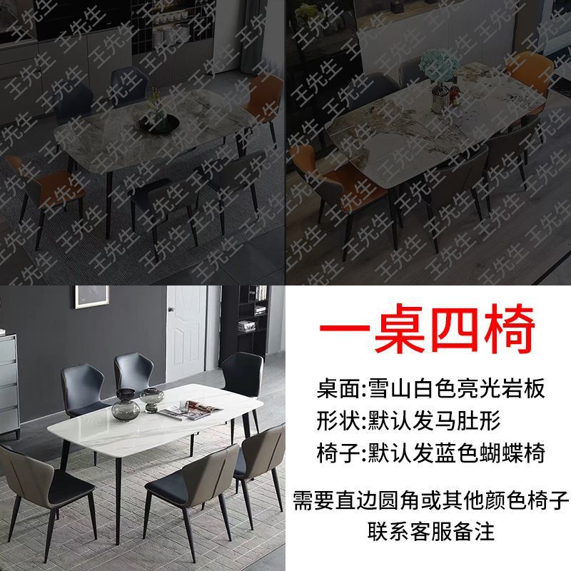 현대 간단한 쌀 테이블 미니멀리스트 라이트 다이닝 테이블 가정용 조합 직사각형 테이블과 의자 세트 가벼운 럭셔리 록 보드