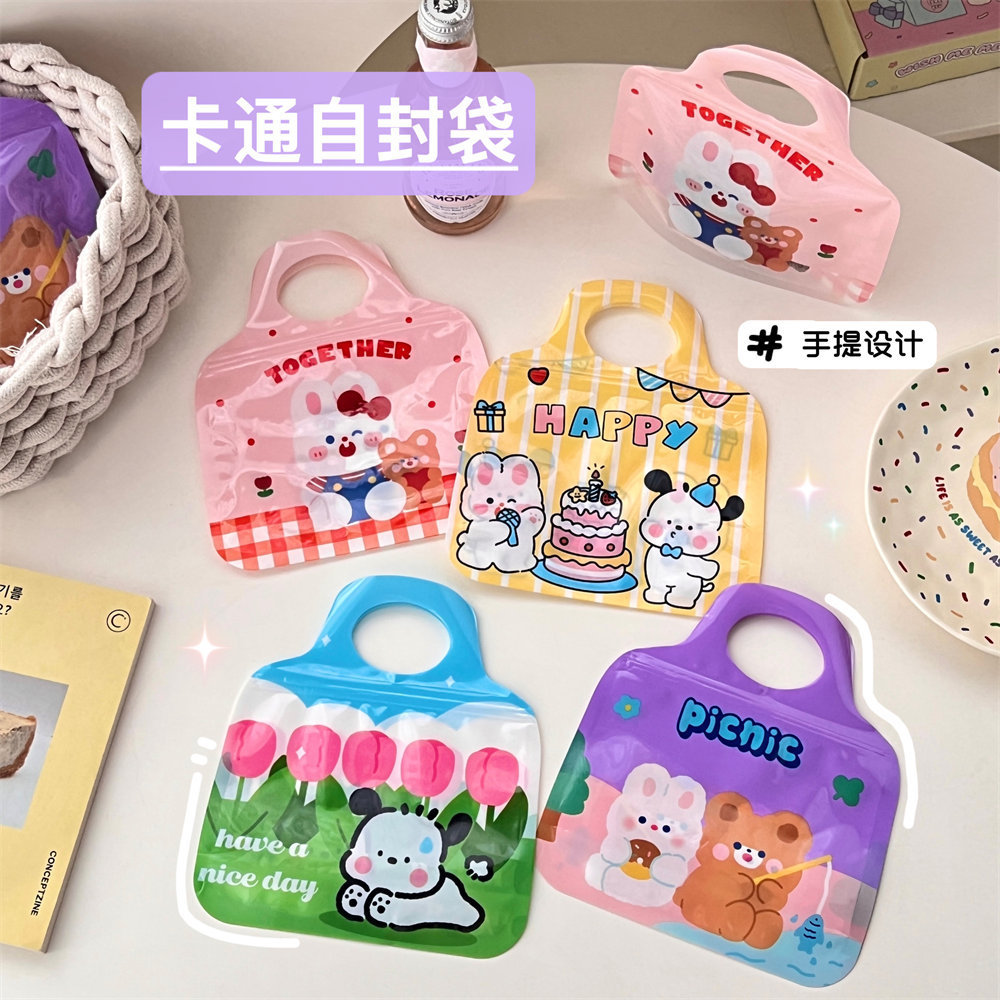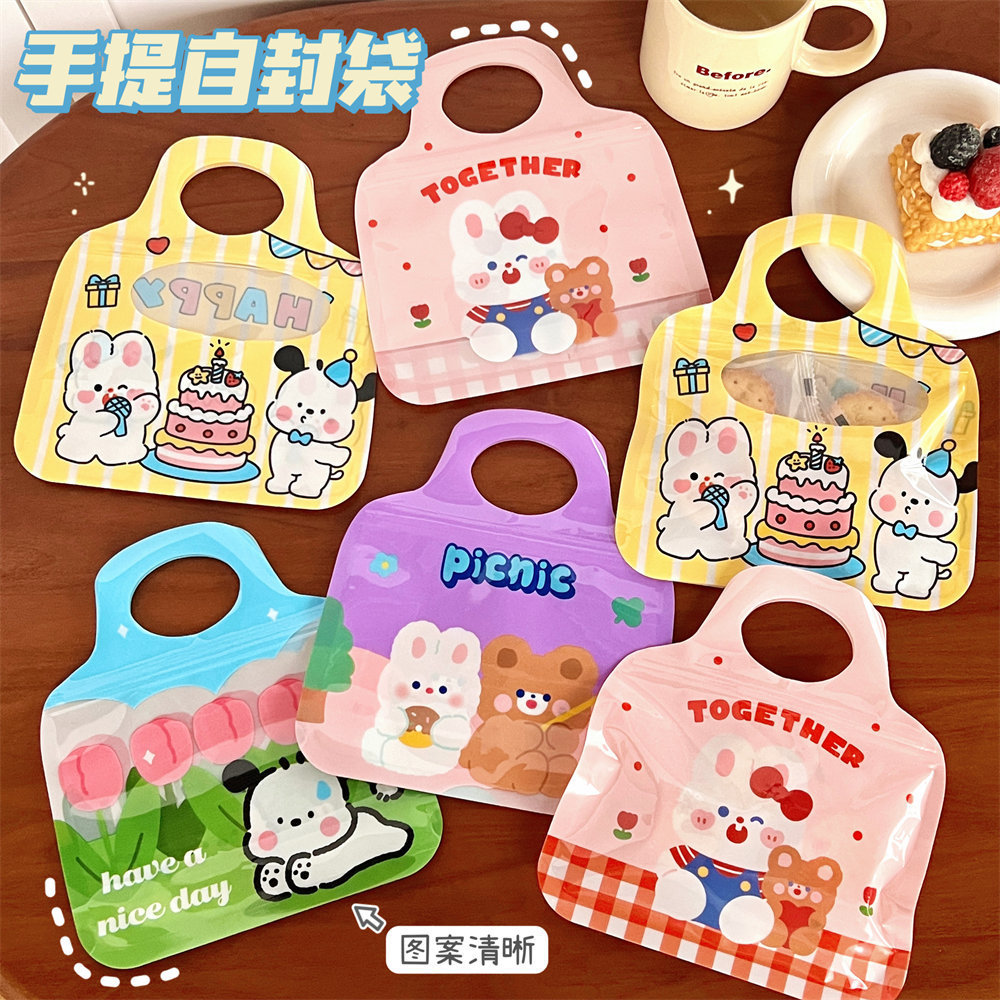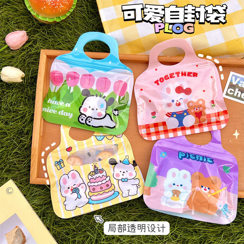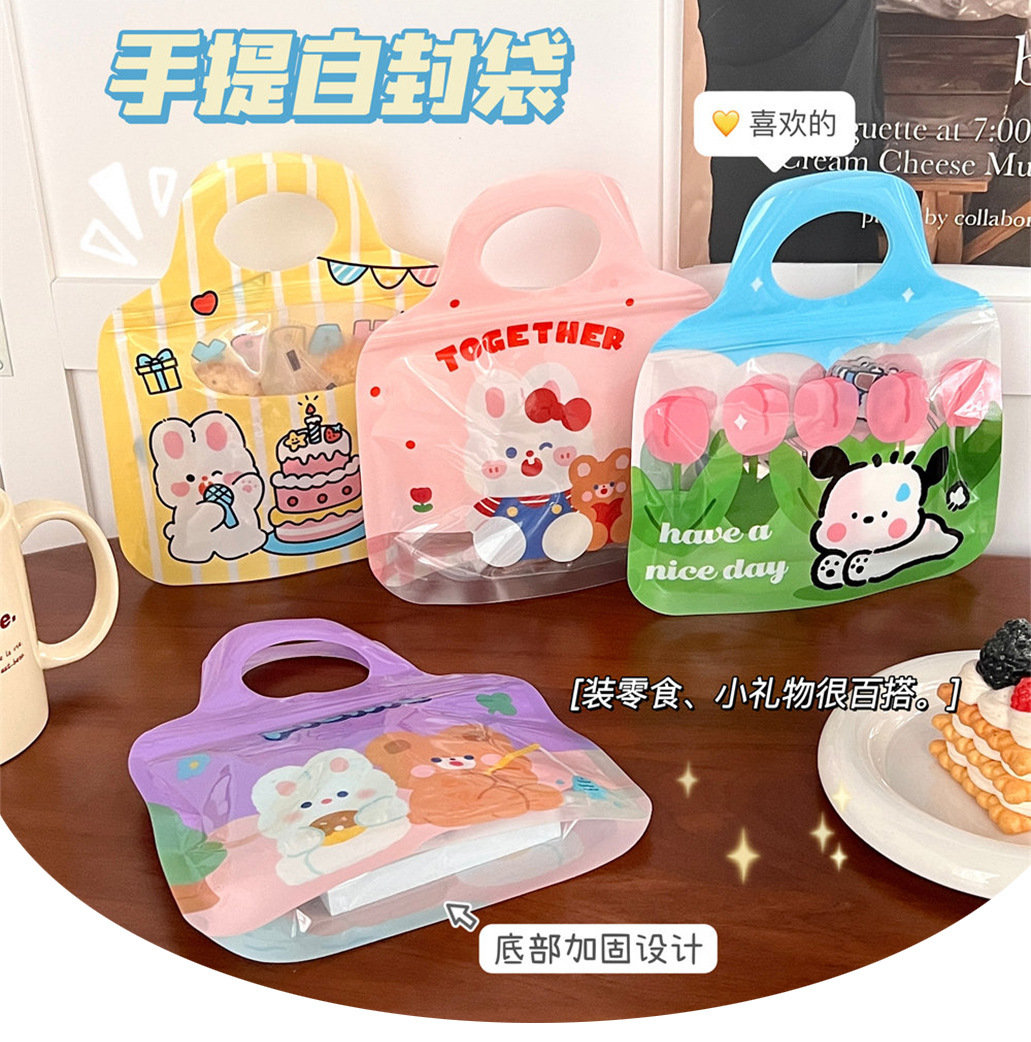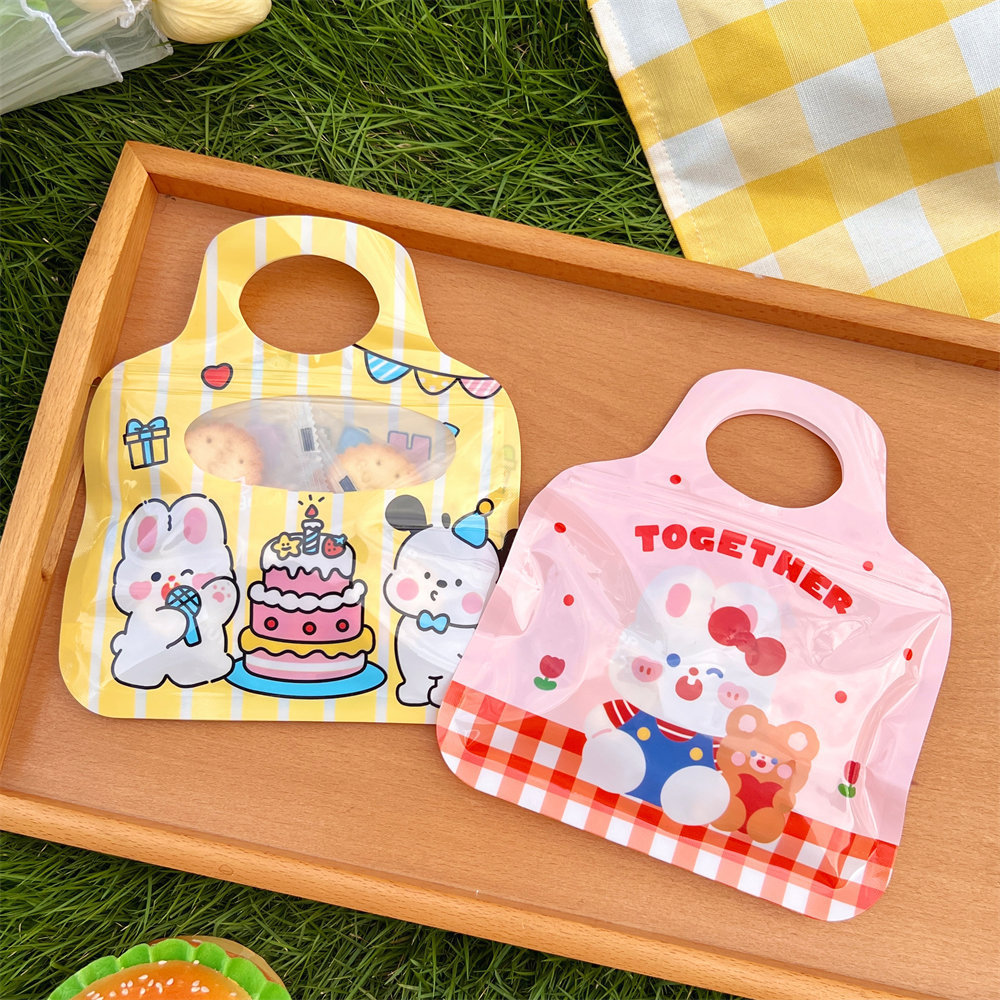 Tengyi 원래 귀여운 만화 휴대용 저장 가방 스낵 선물 자체 밀봉 포장 가방 어린이 날 생일 지 플락 가방