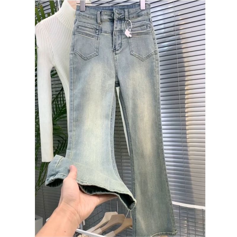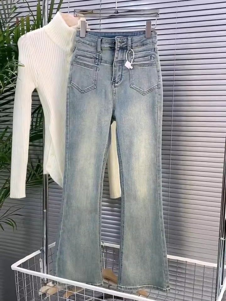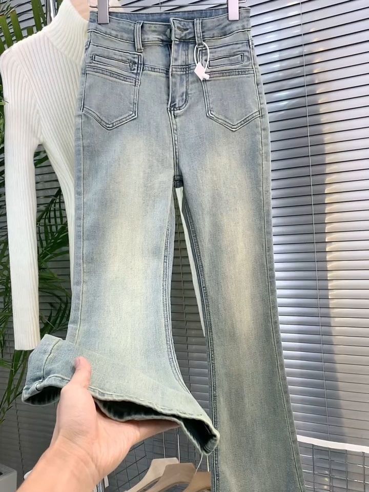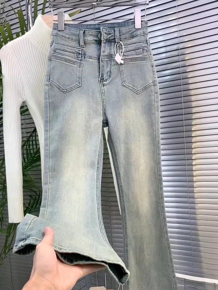 밝은 색상의 하이 웨이스트 마이크로 라즈 청바지 봄 2025 작은 남성을위한 새로운 하이 웨이스트 슬림 핏 슬리밍 스트레치 바지스토어 가기