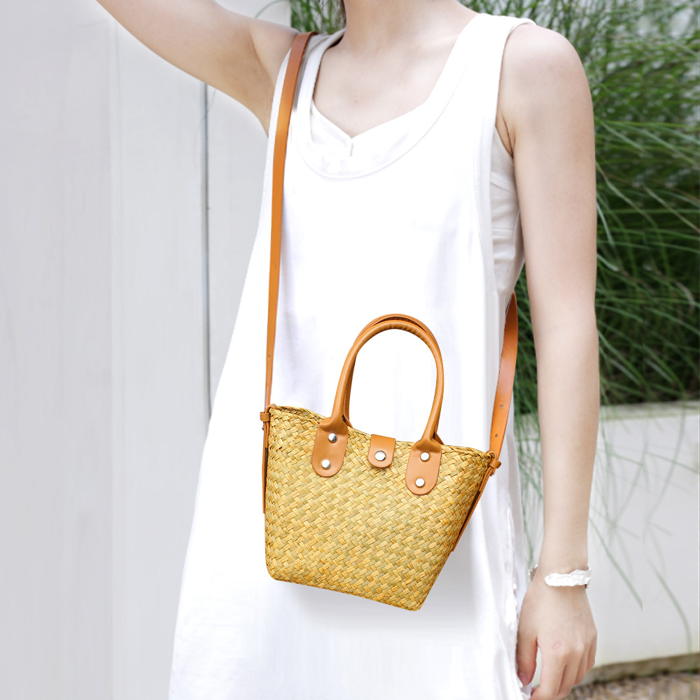 수제 짠 크로스 바디 백 트렌디 한 한국 스타일 올 매치 밀짚 짠 가방 신선한 스타일 핸드백 비치 홀리데이 숄더 백 여성스토어 가기