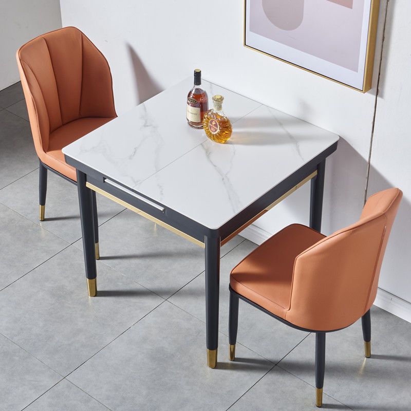 • 텔레스코픽 사각 테이블 화이트 [인덕션 조리기 없음] + 라이트 럭셔리 의자 2개
