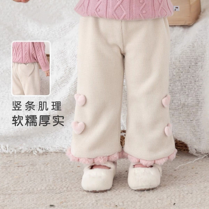 여성용 보물 기모 바지 2024 겨울 새 여자 서양식 아기 겨울 바지 1 ~ 3 년 된 겨울 따뜻한 얇은 양털스토어 가기