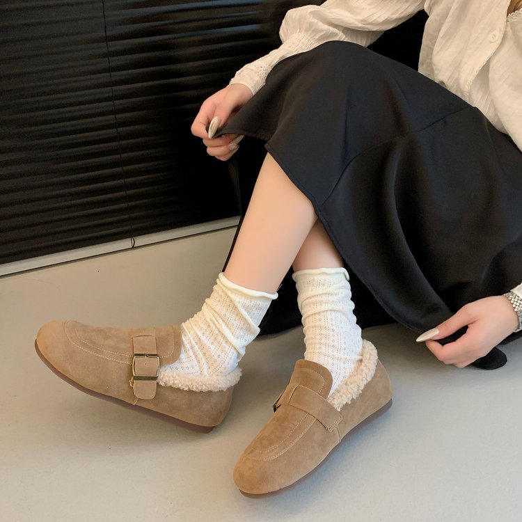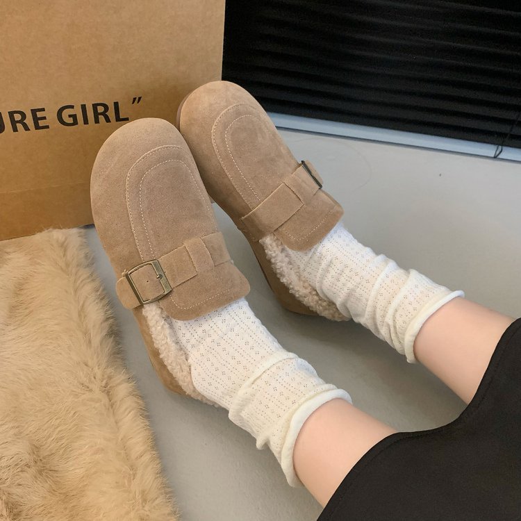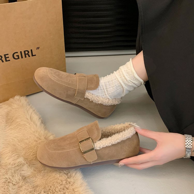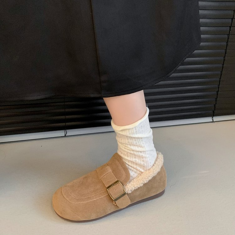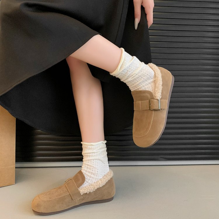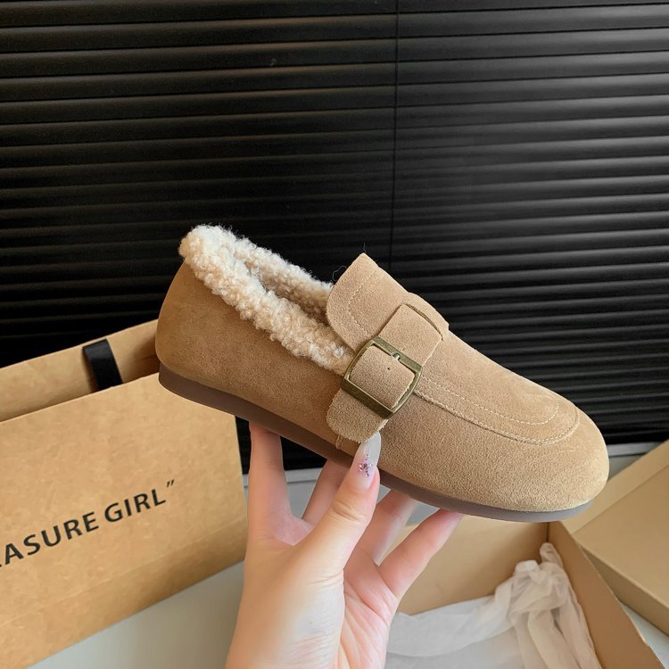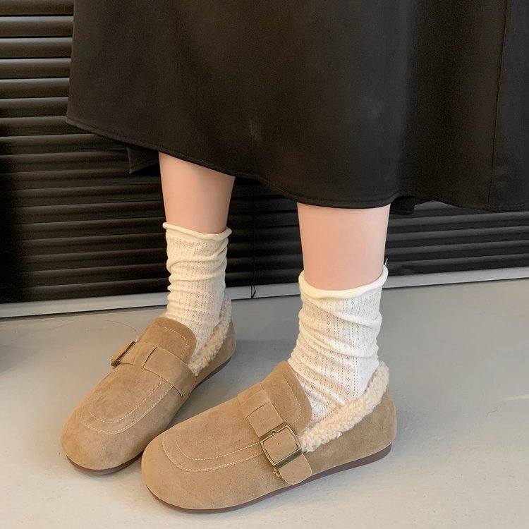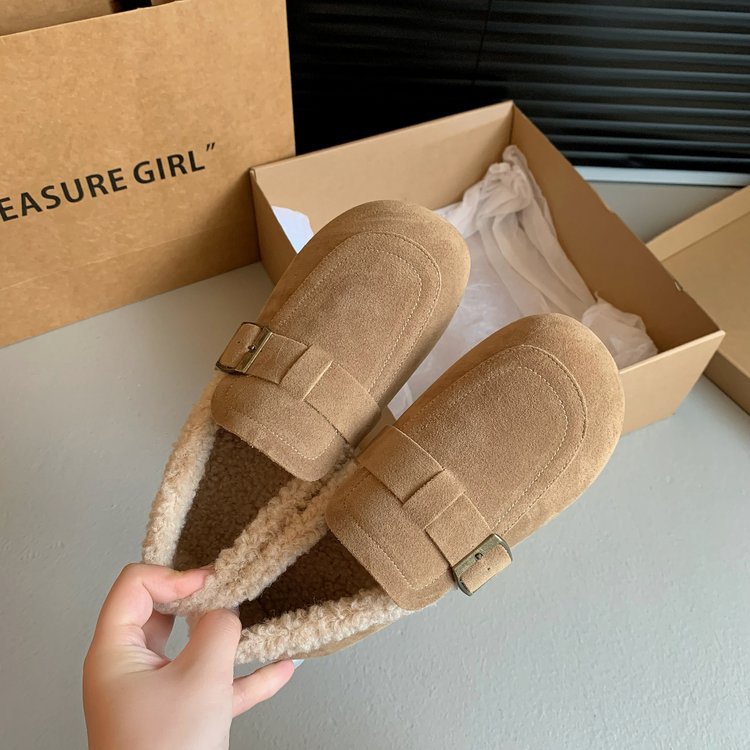 [아만노] 가을 겨울 여성용 램 콩슈즈 플러스 벨벳 슈즈 2024 신상 슬립온 로퍼 모피슈즈스토어 가기