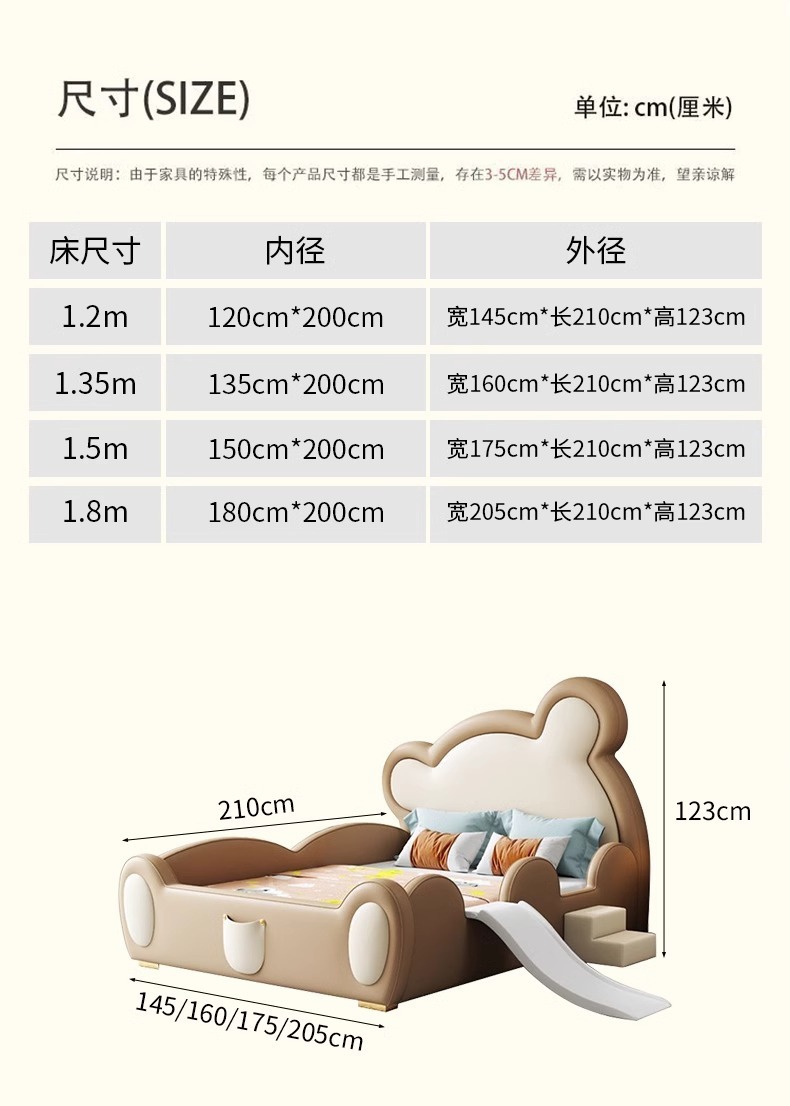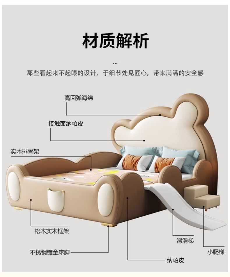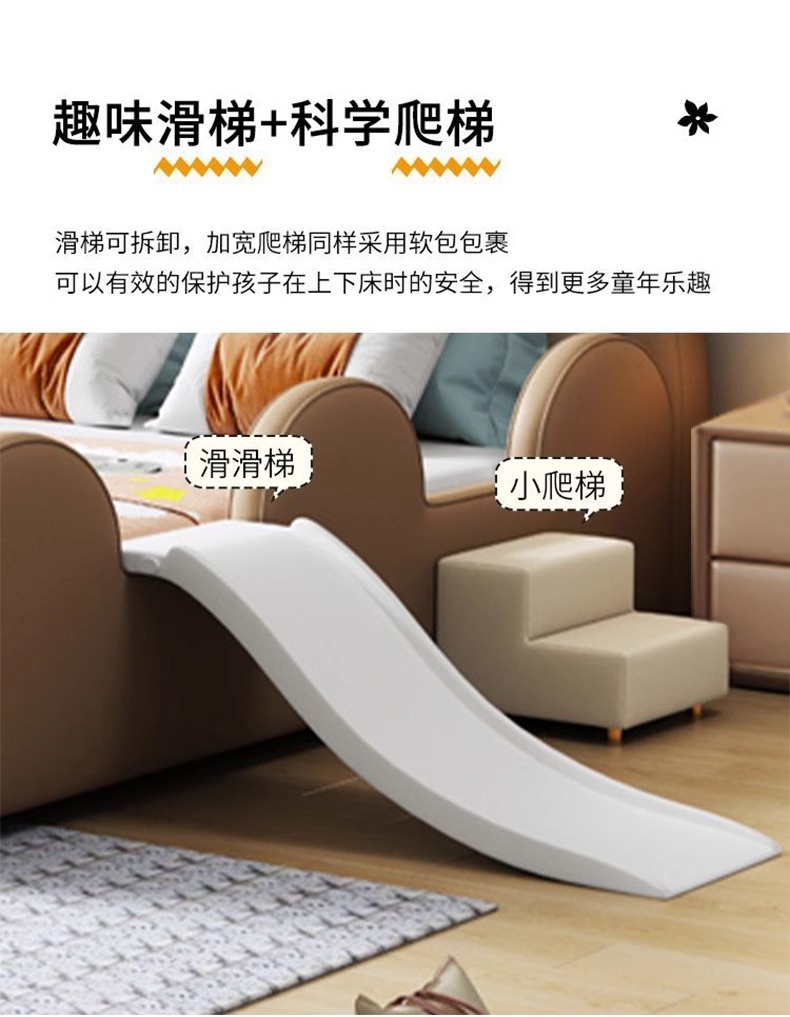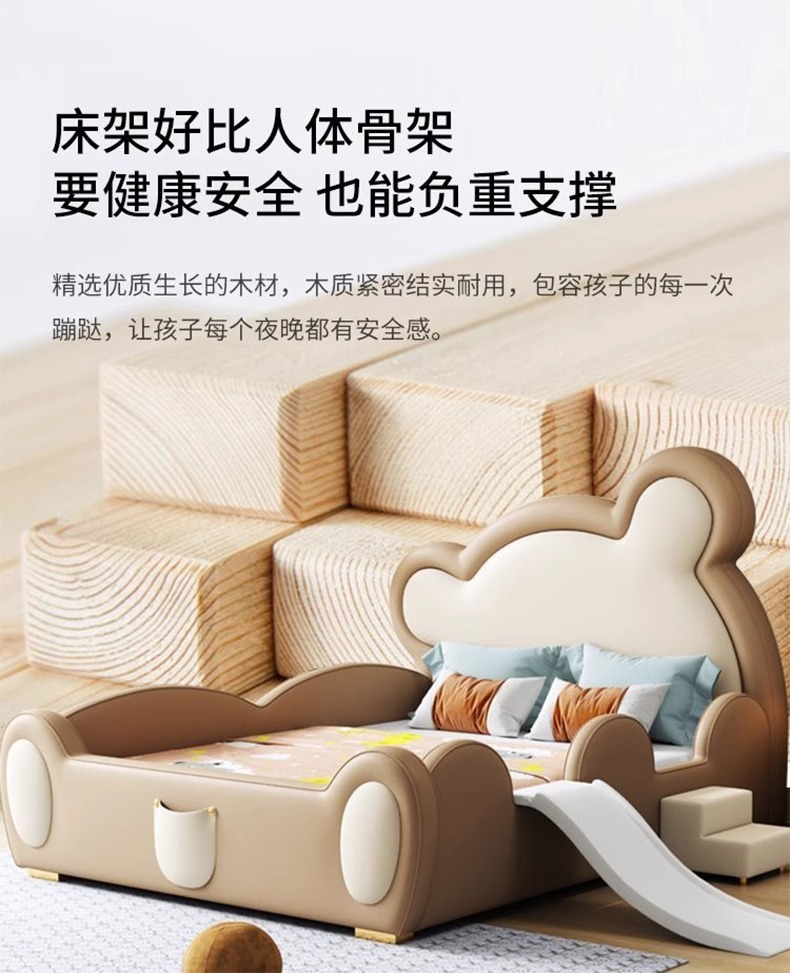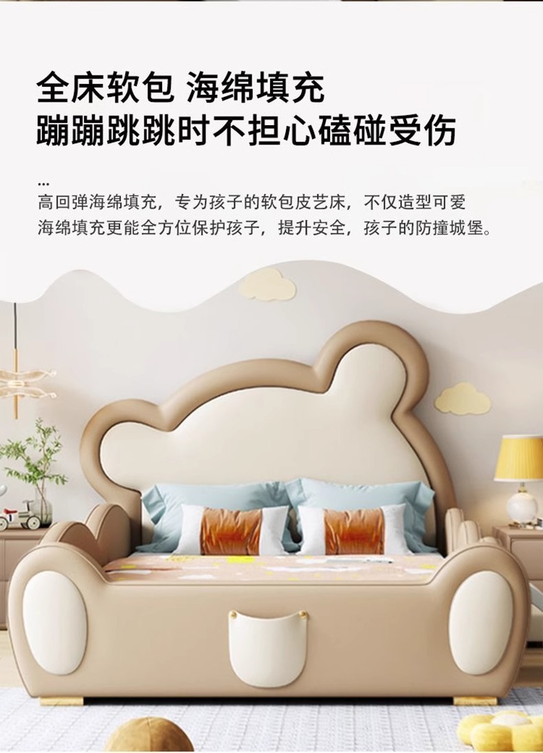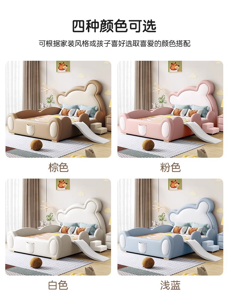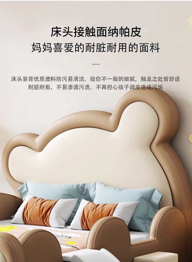 모에 곰 어린이 침대 가드 레일 슬라이드 소년과 소녀 만화 간단한 현대 가죽 단단한 나무 귀여운 아기 침대